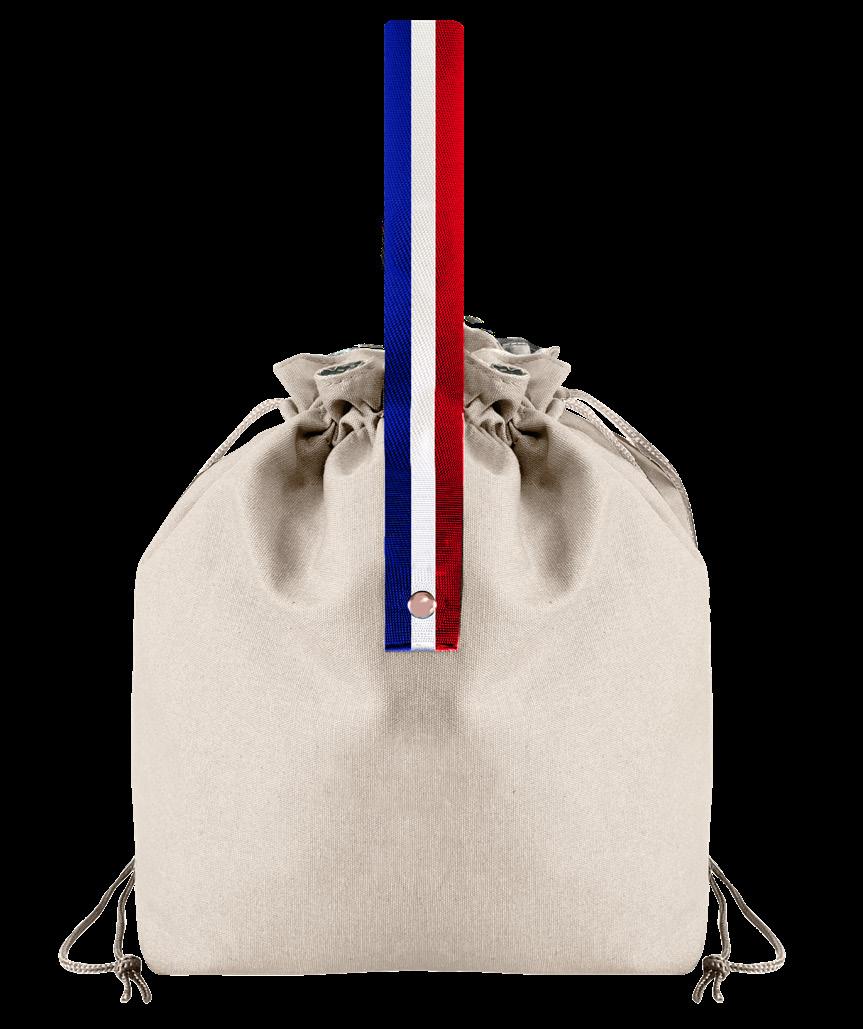 Sac en coton double poignet confectionné en France à partir de coton recyclé, certifié Origine France Garantie.