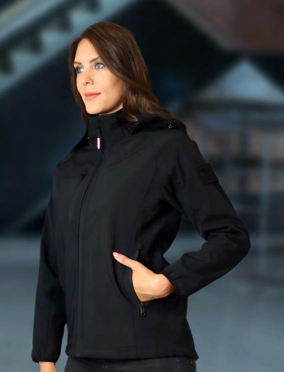 • 1 poche zippée sur la manche gauche avec mousqueton et zone de personalisation