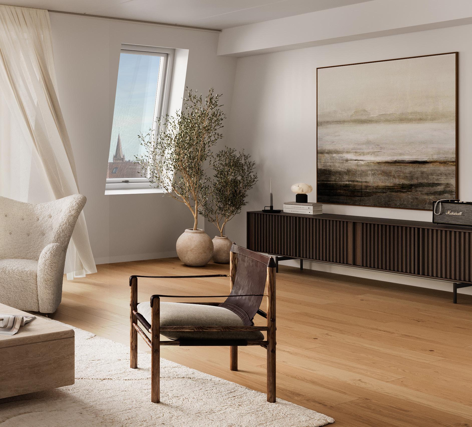 De store vinduespartier og smukke egetræsgulve fra HARO i alle opholdsrum leder dig elegant rundt i din nye bolig. Klassiske køkkener fra HTH skaber et skønt hjerterum i boligen, og der er mulighed for at sætte sit eget præg, hvis boligen købes indenfor tilvalgsdeadline.
