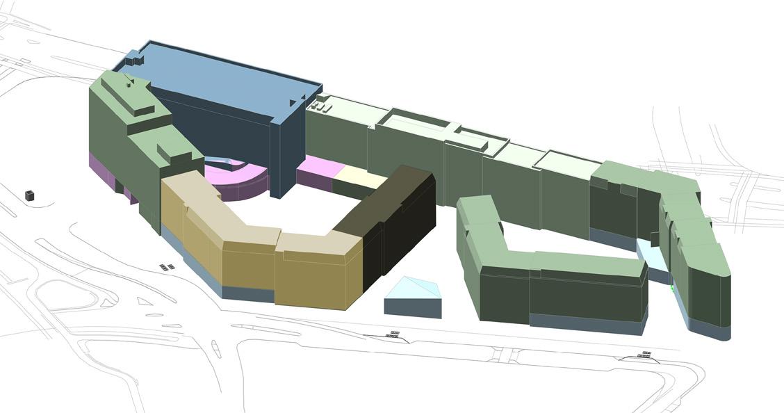Den viste 3D-model er en foreløbig visning af karrébyggeriets udformning og placering på grunden samt fordeling og placering af boliger, erhvervslejemål og p-hus i byggeriet. Der tages forbehold for fejl og ændringer. Fredericiavej Gammelhavn