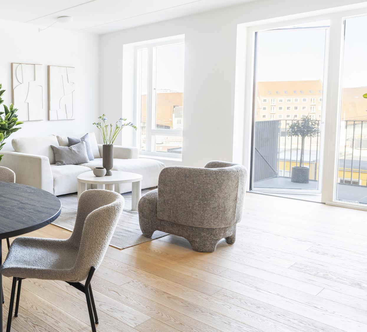 er 2-, 3- og 4-værelseslejligheder, alle med enten altaner eller terrasser som en naturlig udvidelse af hjemmet, hvorfra uderummenes smukke farveskift kan nydes i takt med årstiderne.