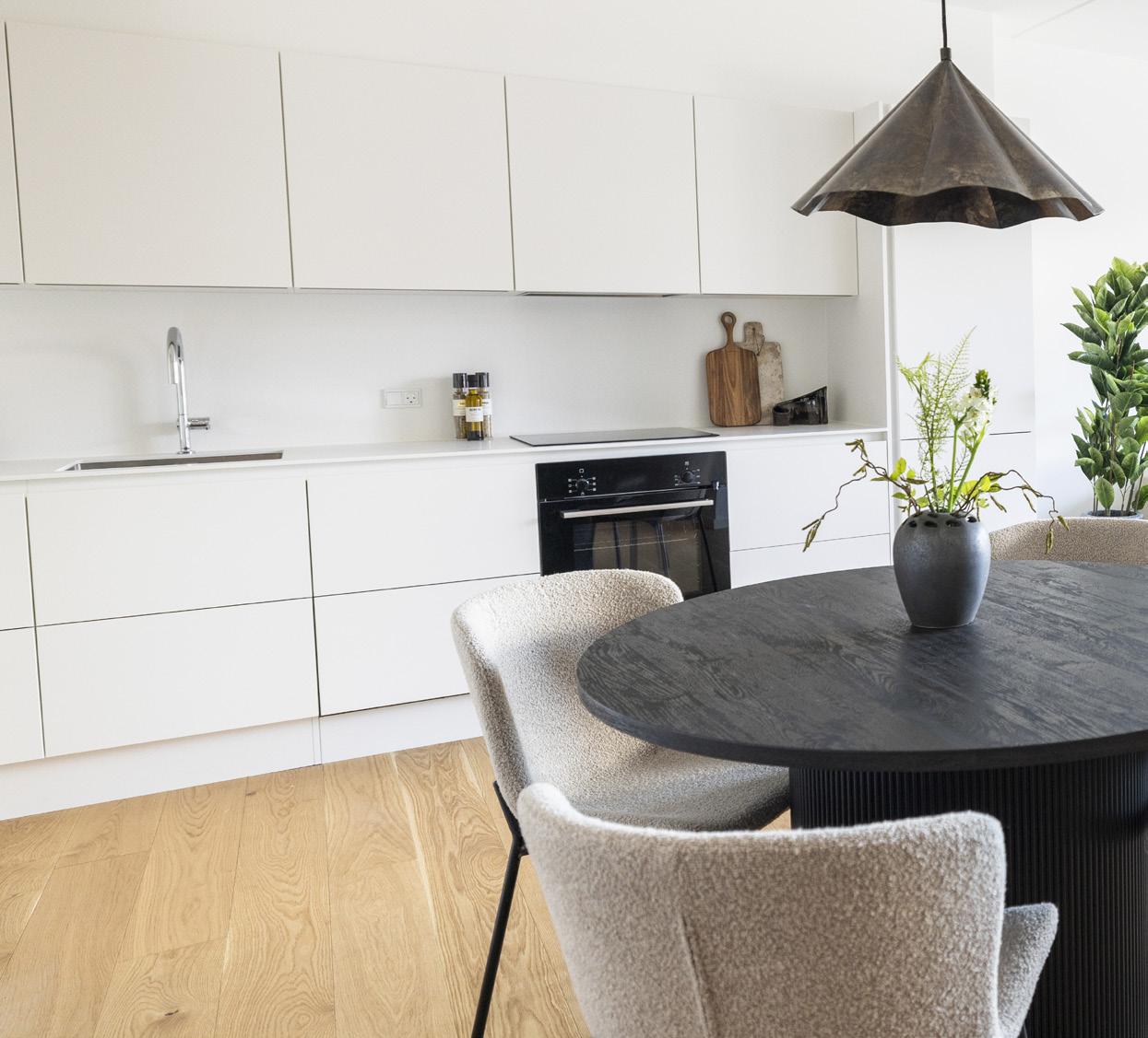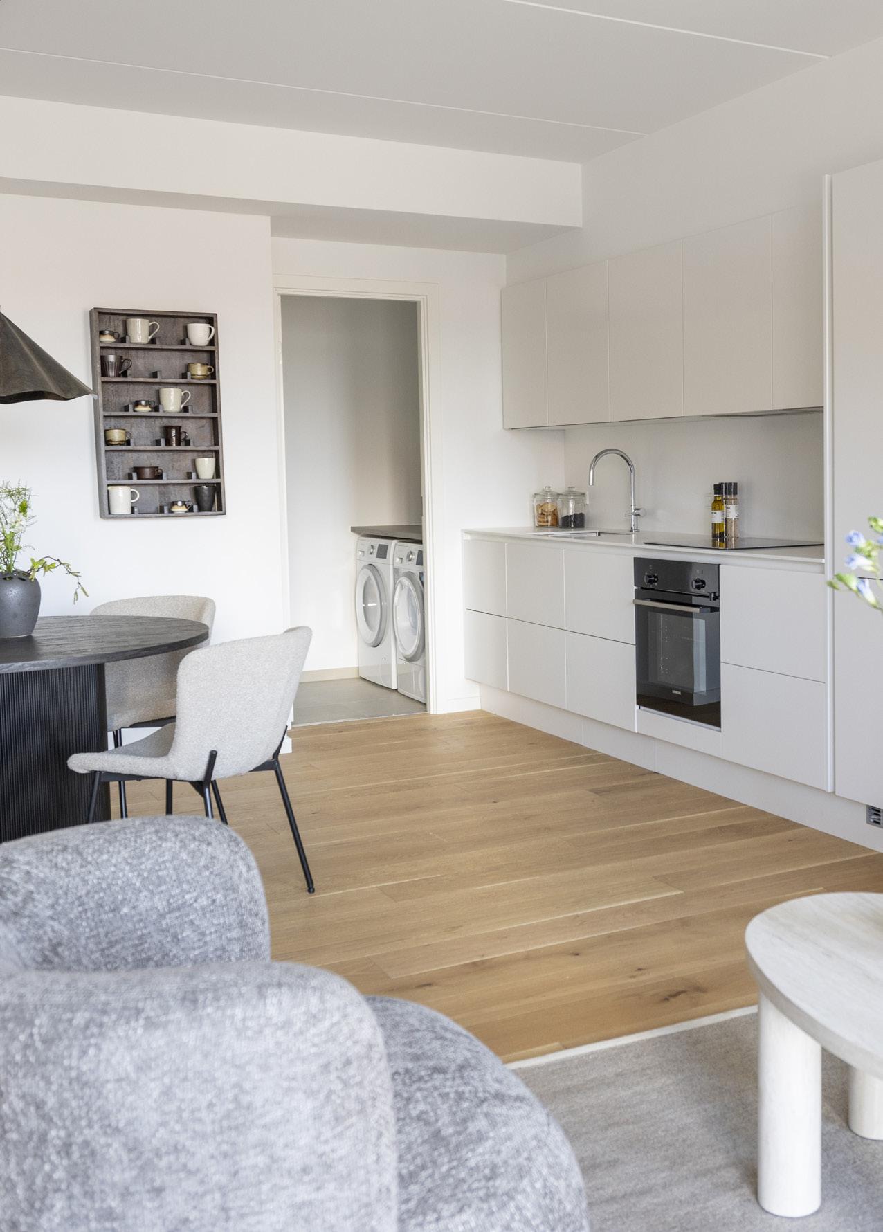 I Remisens indflytningsklare ejerboliger spreder solens stråler sig fredfyldt gennem boligens store vinduespartier til de rummelige, åbne opholdsrum. Her
