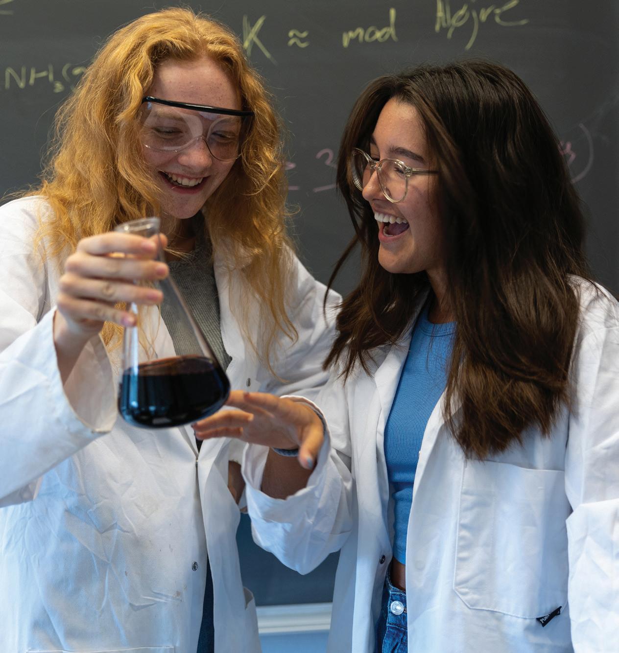 Vælger du en studieretning, der har Fysik A/B og Kemi B, lærer du bogstaveligt talt om stort og småt – og det imellem. Kemi ser på stofferne omkring os, hvordan de er opbygget, og hvordan de reagerer med hinanden (f.eks. grundstoffer og molekyler). I fysik beskriver vi alt fra atomernes kvantiserede opbygning til galaksernes bevægelse. Vi anvender matematik som sprog til at beskrive de sammenhænge, der