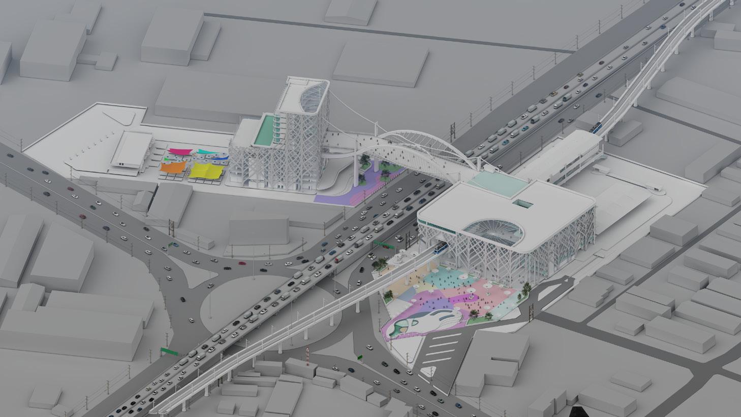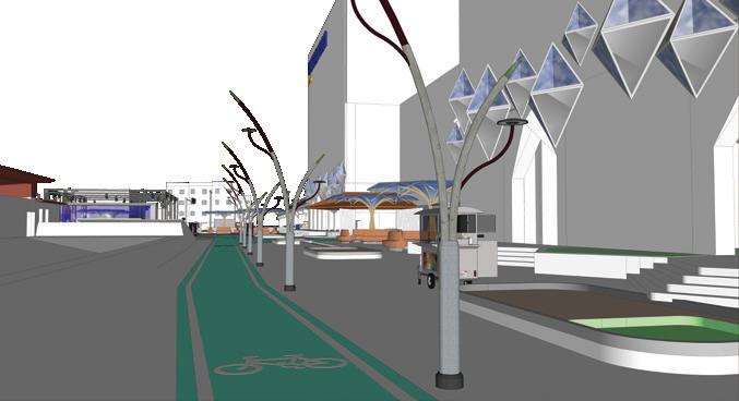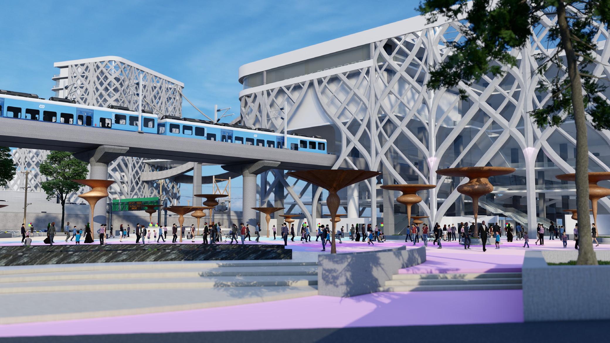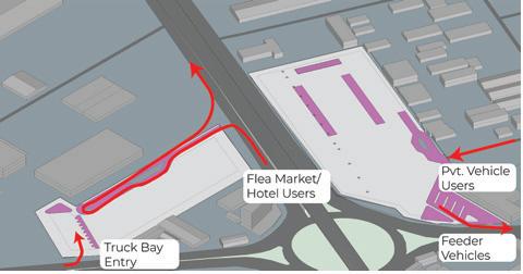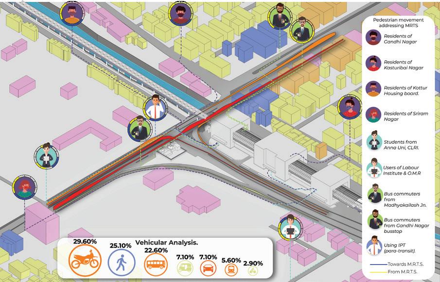 Social space intertwining with various modes of transport and enabling last mile connectivity. Taking the motorised transport lanes underground to enhancing the use of non motorised transport above ground thereby making the plaza pedestrian friendly.