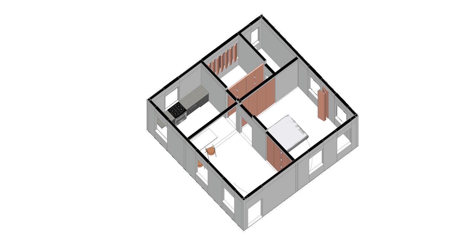 Role : Modular design development, Designing retractable interior walls within a unit, CAD Drafting, Digital modeling, Architectural design, Design visualization and Presentation.