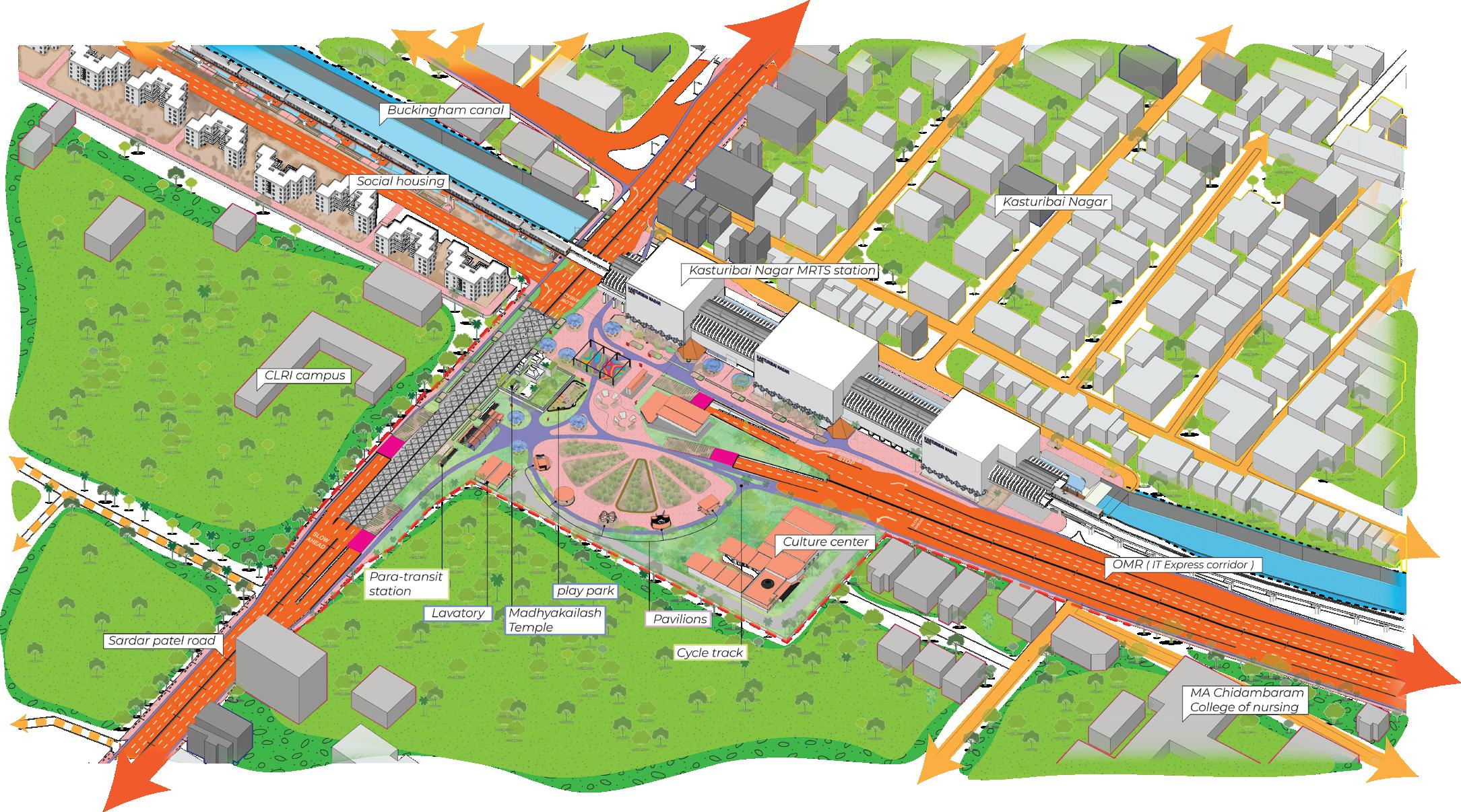 *This Projects is a group project, done between aug. 2020 - nov. 2020 so due to covid pandemic, the data used for this project mainly dependent on literature study which was divided and collected by all the members of the team, the project was divided onto 3 namely Social plaza, MRTS redesign and redeveloping social housing along the Buckhingham canal. The social plaza is done my myself and is presented here.