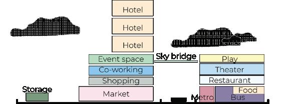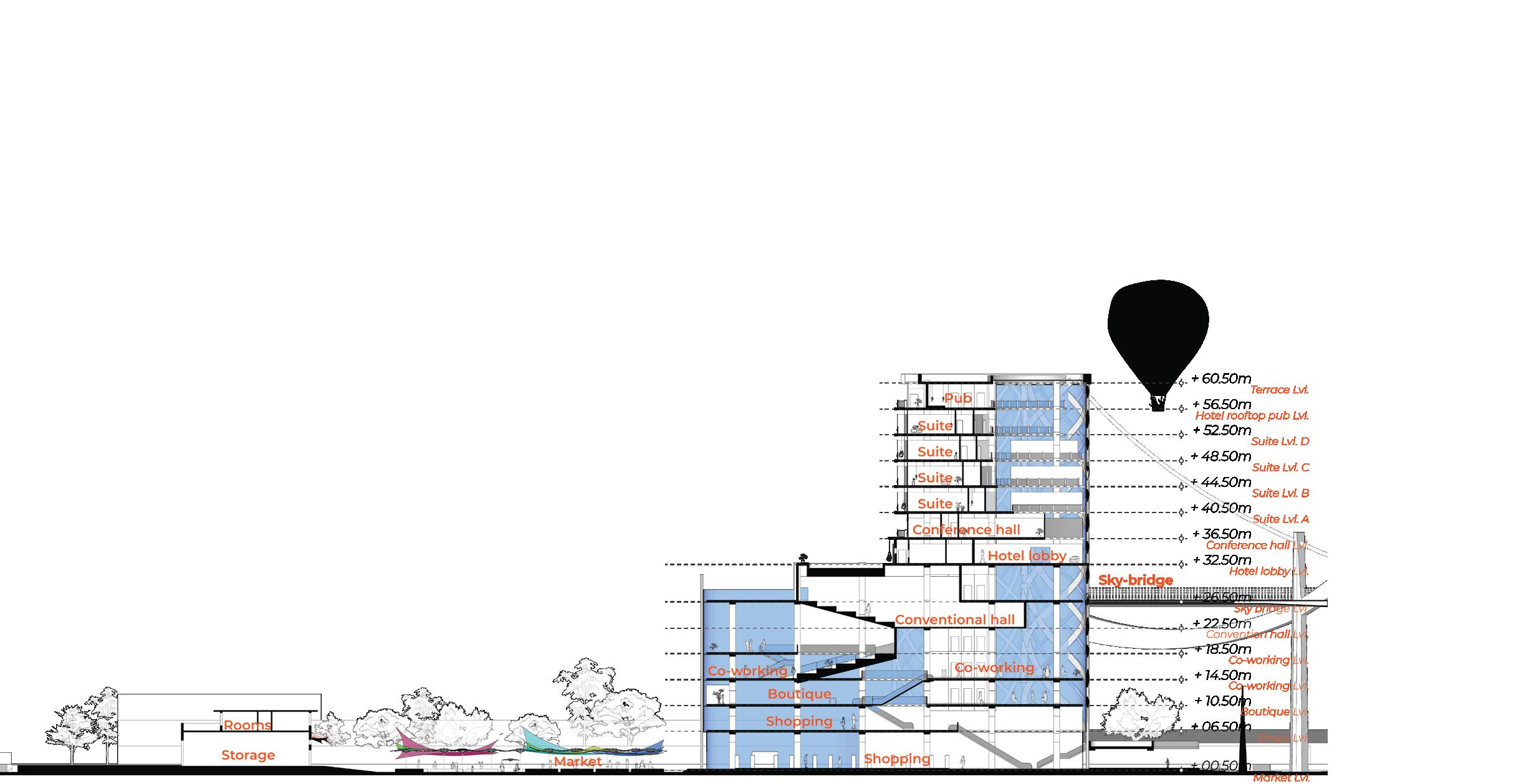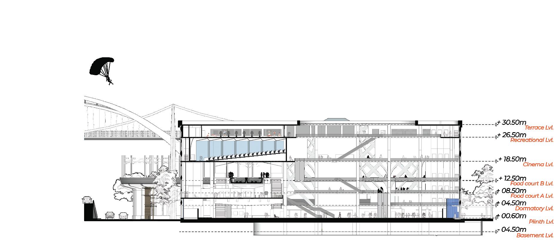 The design aims to bring a symbolic relationship between the users and the built form, the liquid population in the site demands mixed-use development inorder to satisfy them throughout the day and throughout the year. Needs of the site is translated into programs of their respective typologies.