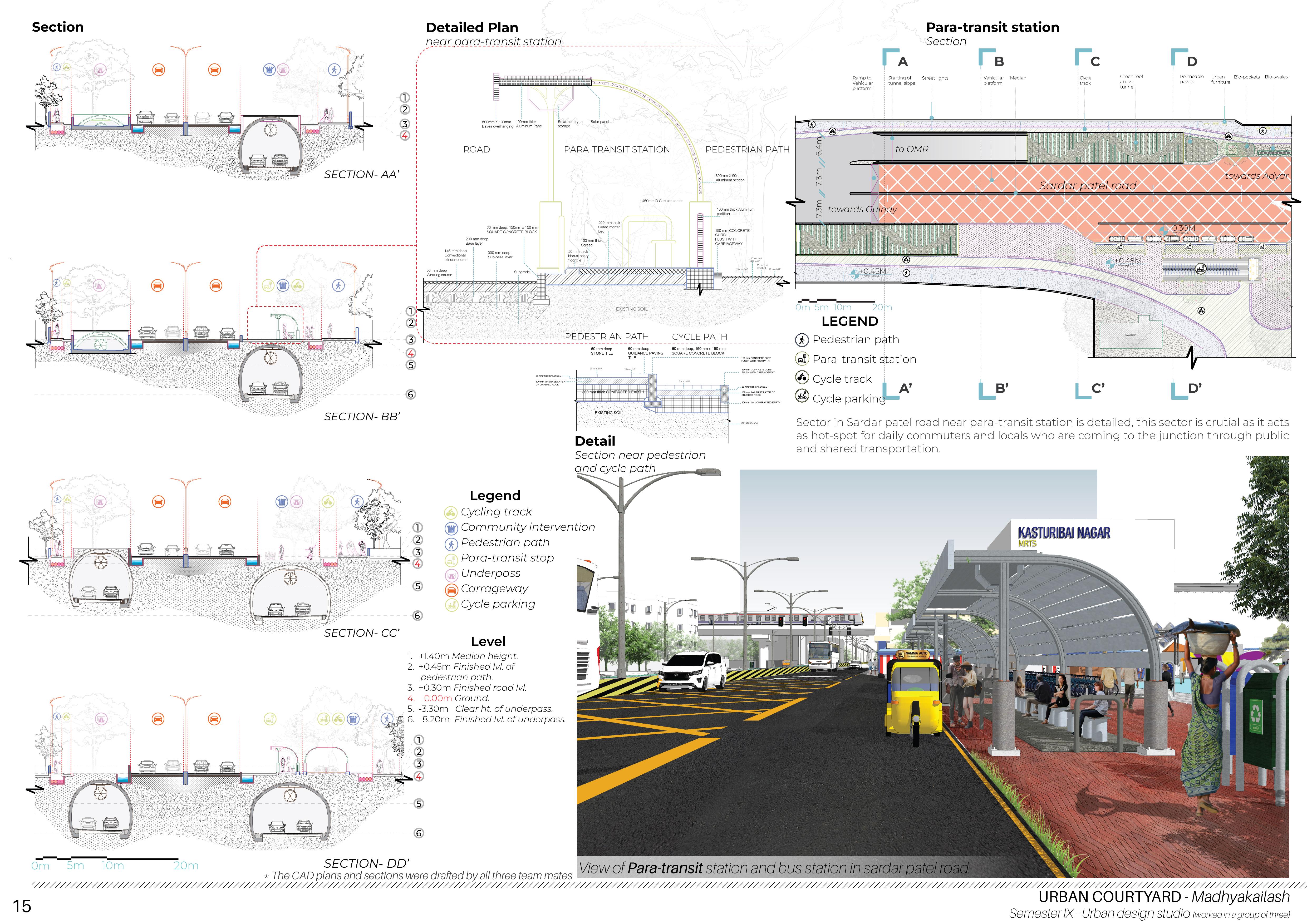 Urban Courtyard redefines the urban heart to reflect the social and physiological, economic and cultural needs of the society. This design aims at being an entrance to the city, promote NMT and addresses communal needs. Madhyakailash junction connects two major roads in Chennai. The social aspect of this project is handled by myself and is presented here.