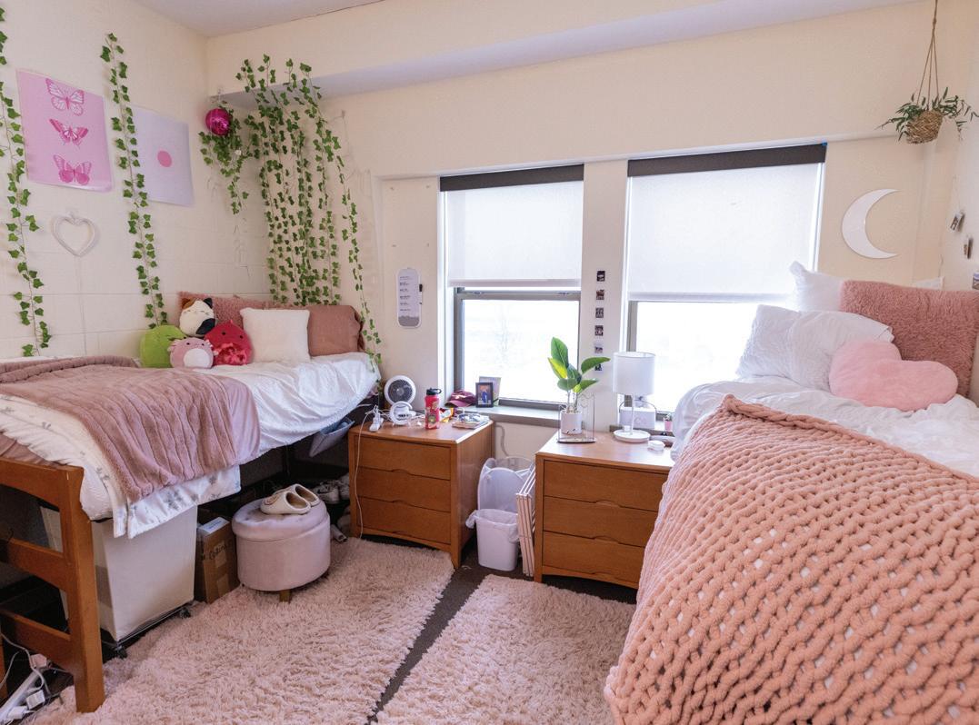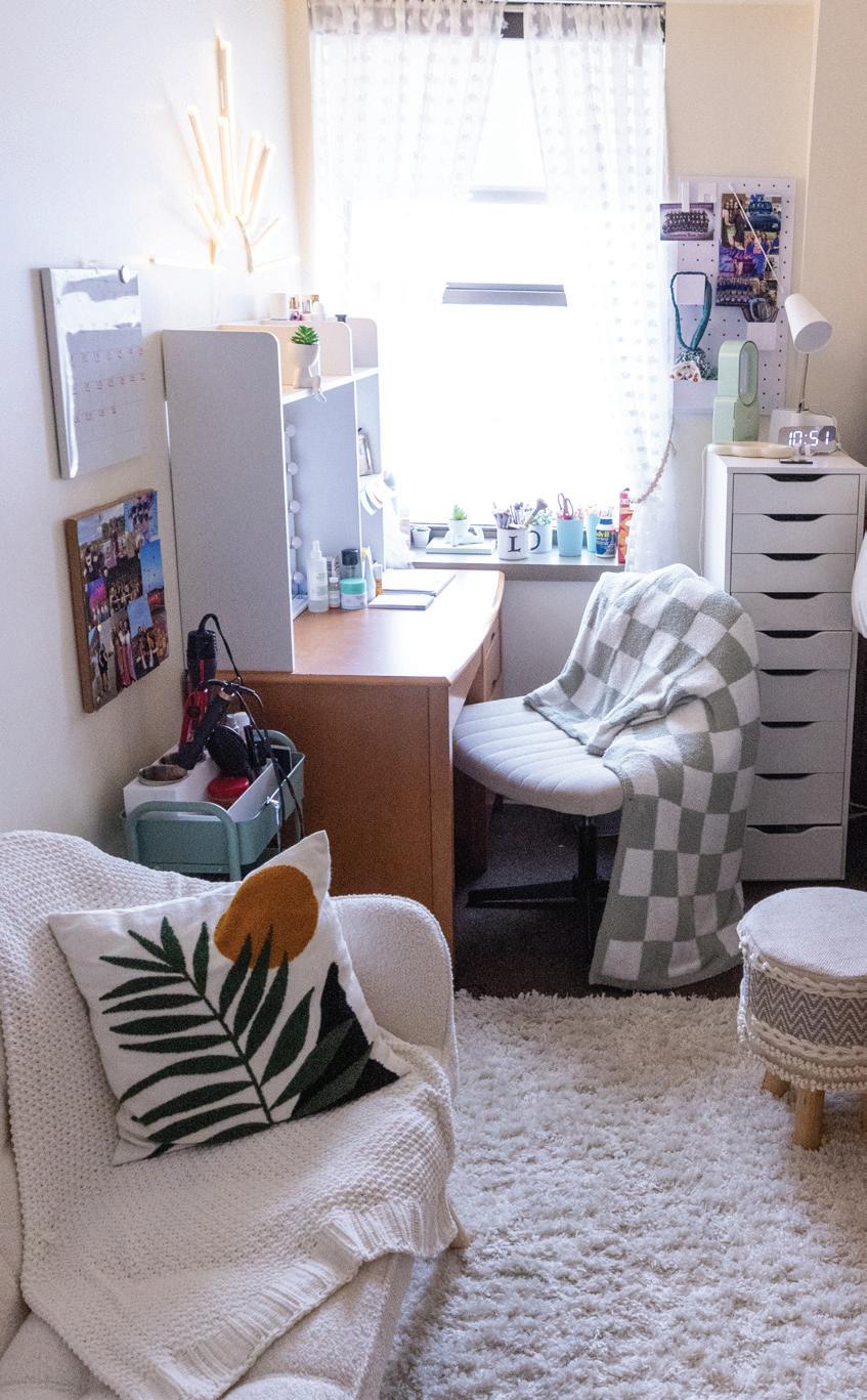 • each bedroom includes a bed, dresser, desk, wardrobe and chair for each resident