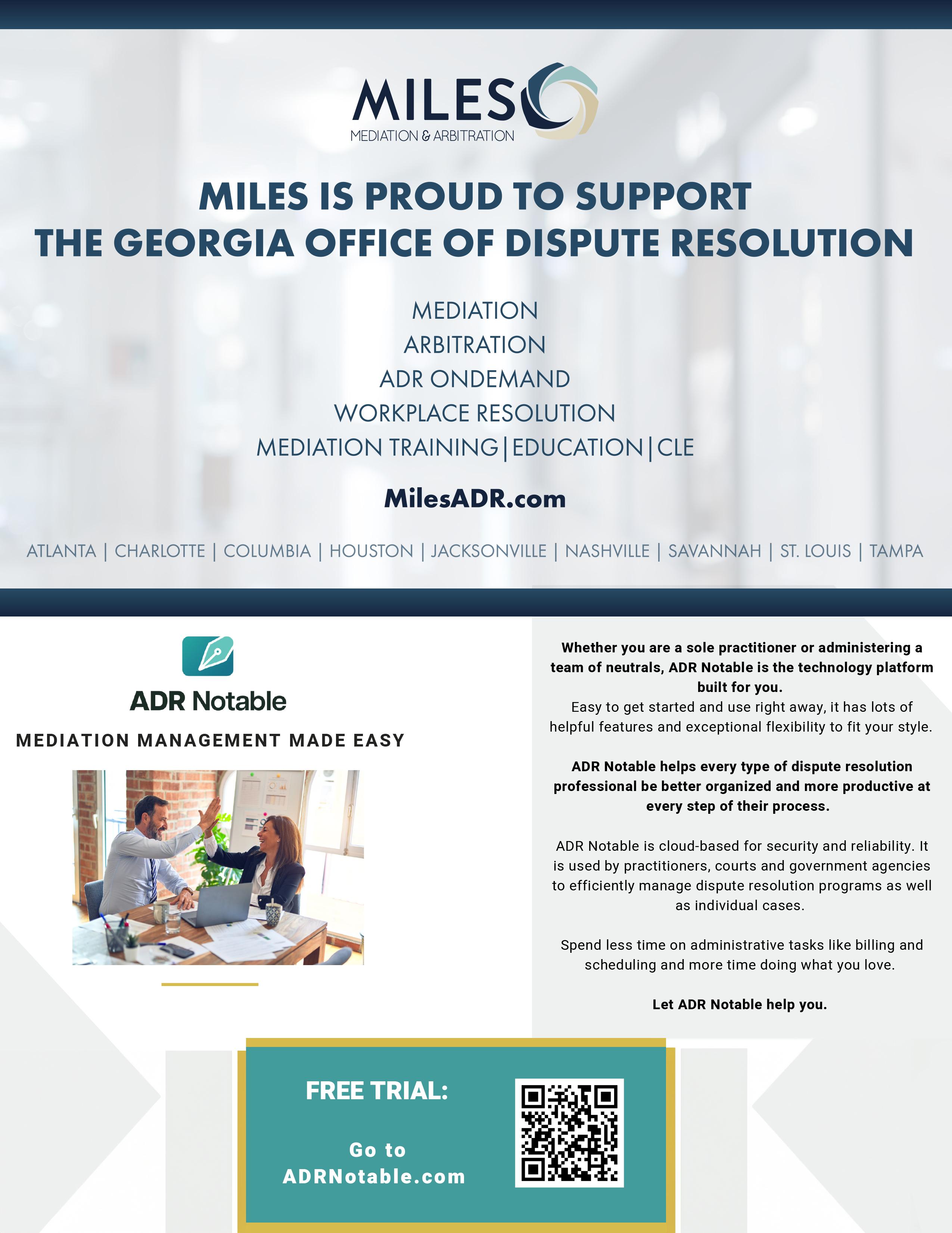 Welcome to the 31st Annual ADR Institute, co-sponsored by the Supreme Court of Georgia Commission on Dispute Resolution and the Dispute Resolution Section of the State Bar of Georgia. For three decades, the ADR Institute has been the premiere dispute resolution conference in Georgia, drawing a variety of professional disciplines and featuring both local and national speakers. It has and remains our goal to provide our attendees with quality speakers, informative content, and concrete takeaways which you may implement into your practice.