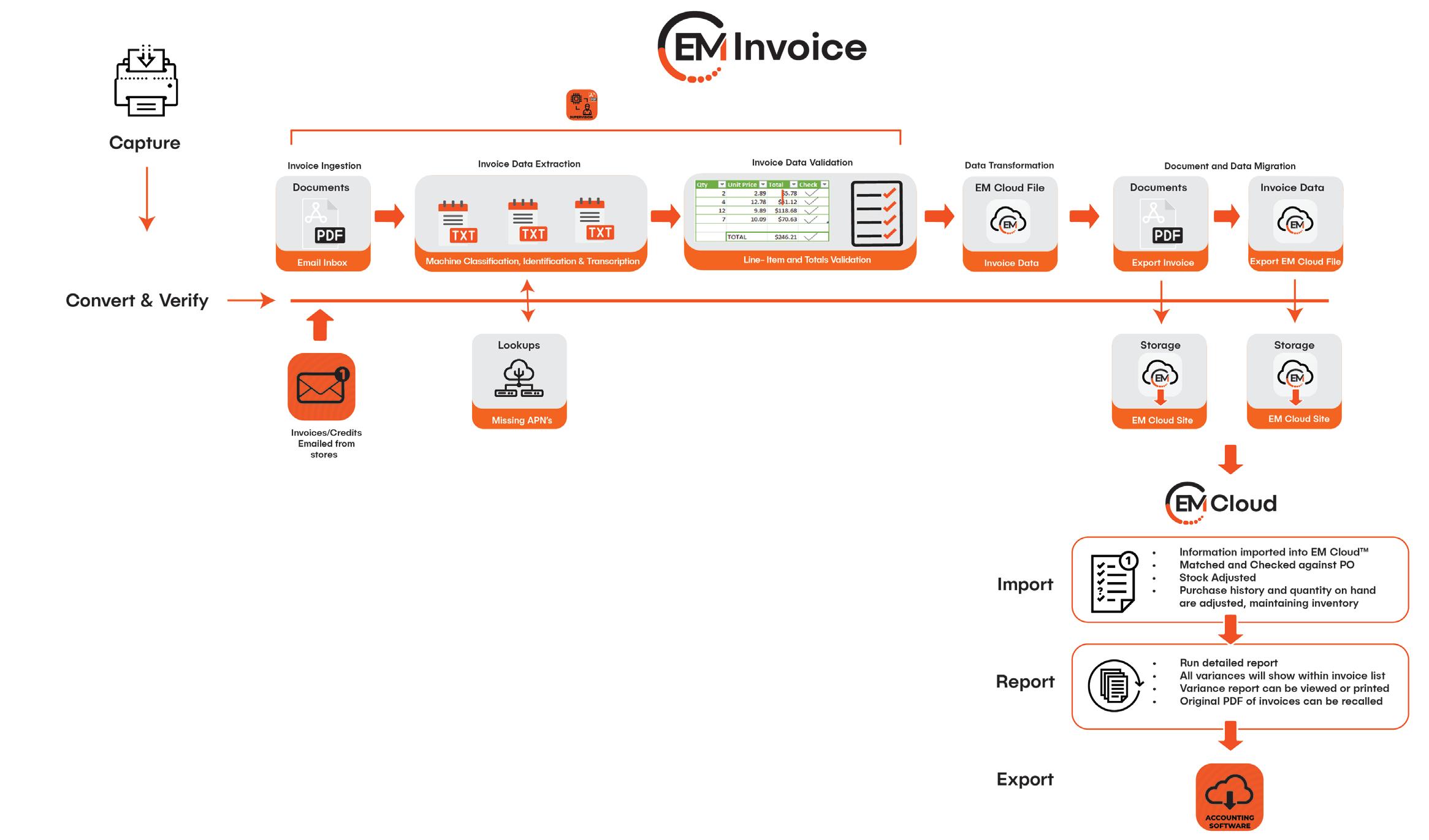 Take advantage of the EM Invoicing and EM Scan system and reduce your invoicing time.