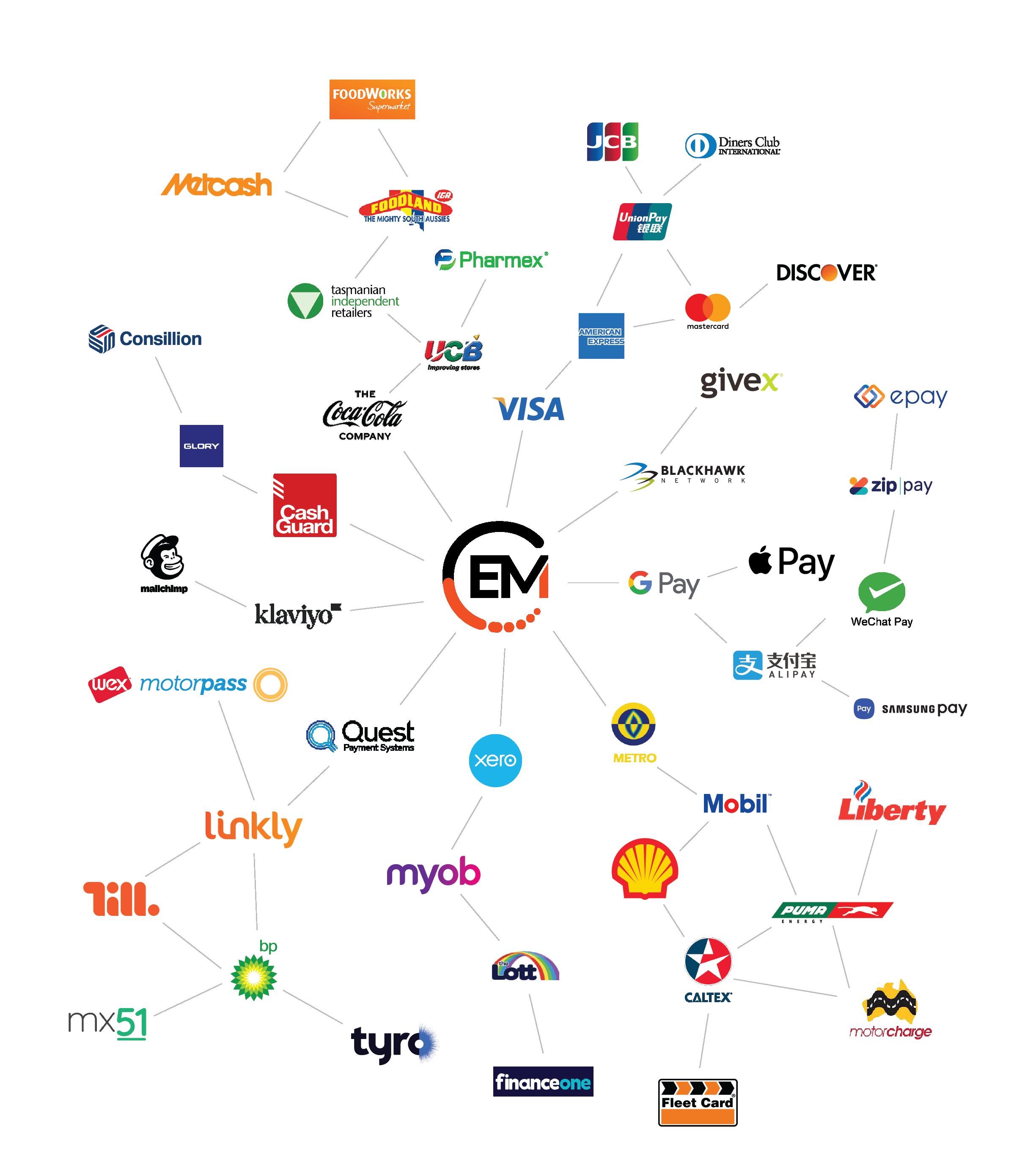 Integrate with multiple software applications, payment portals and rewards and e-commerce, platforms.