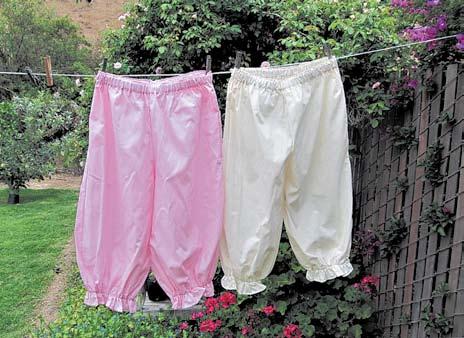 Bloomers followed crinolines which were made of cotton or linen but occasionally horse hair. These half-slips were meant to accentuate tiny waists. They sound about as comfortable as the corsets made from whale bone.