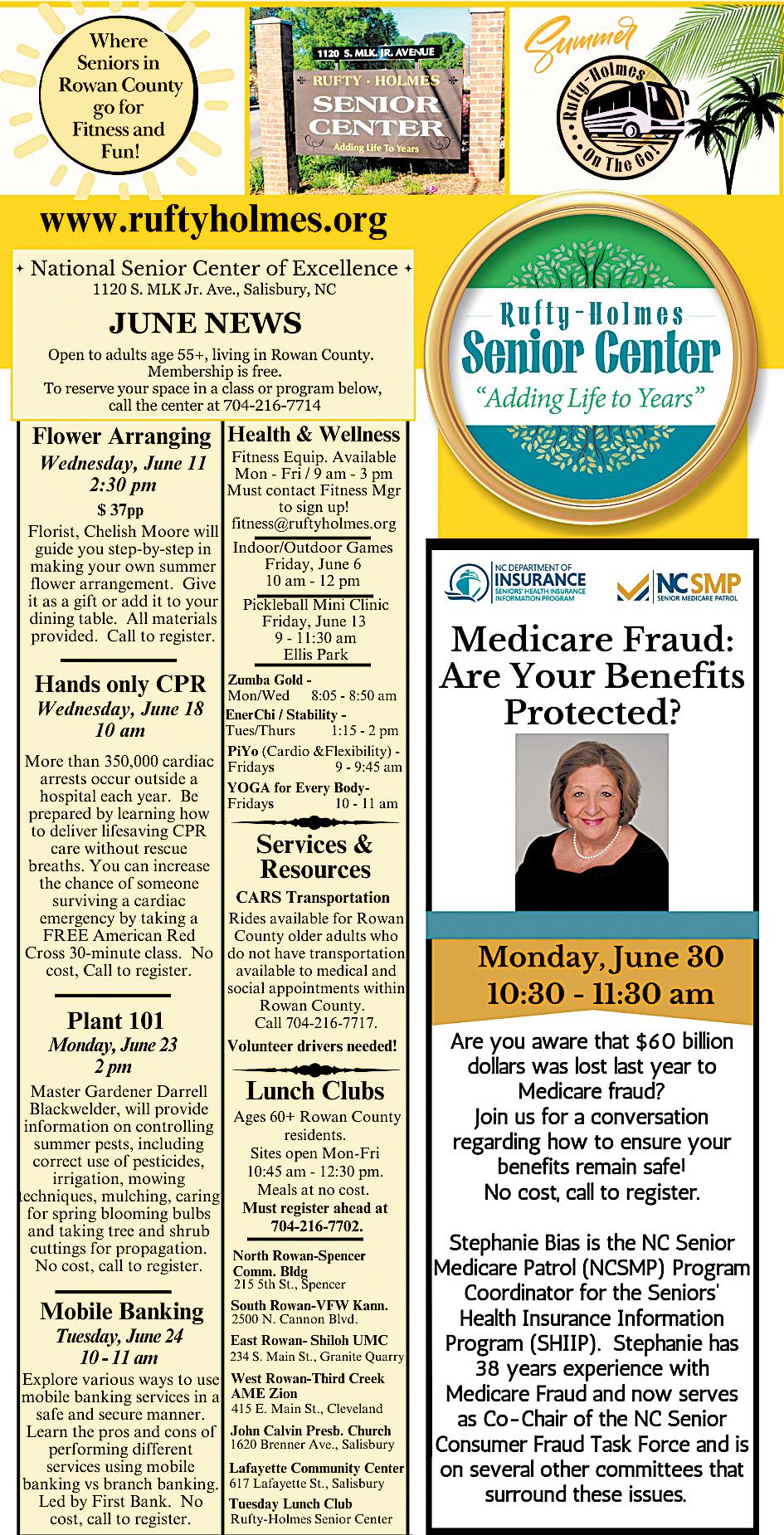 anticipation as we await budget approvals. This period naturally prompts reflection on what our center currently offers to the aging adults of Rowan County and where we might grow. Over the past three weeks, I’ve heard two compelling stories that reminded me just how vital our services are, particularly SHIIP, the Seniors’ Health Insurance Information Program through the NC Department of Insurance.
