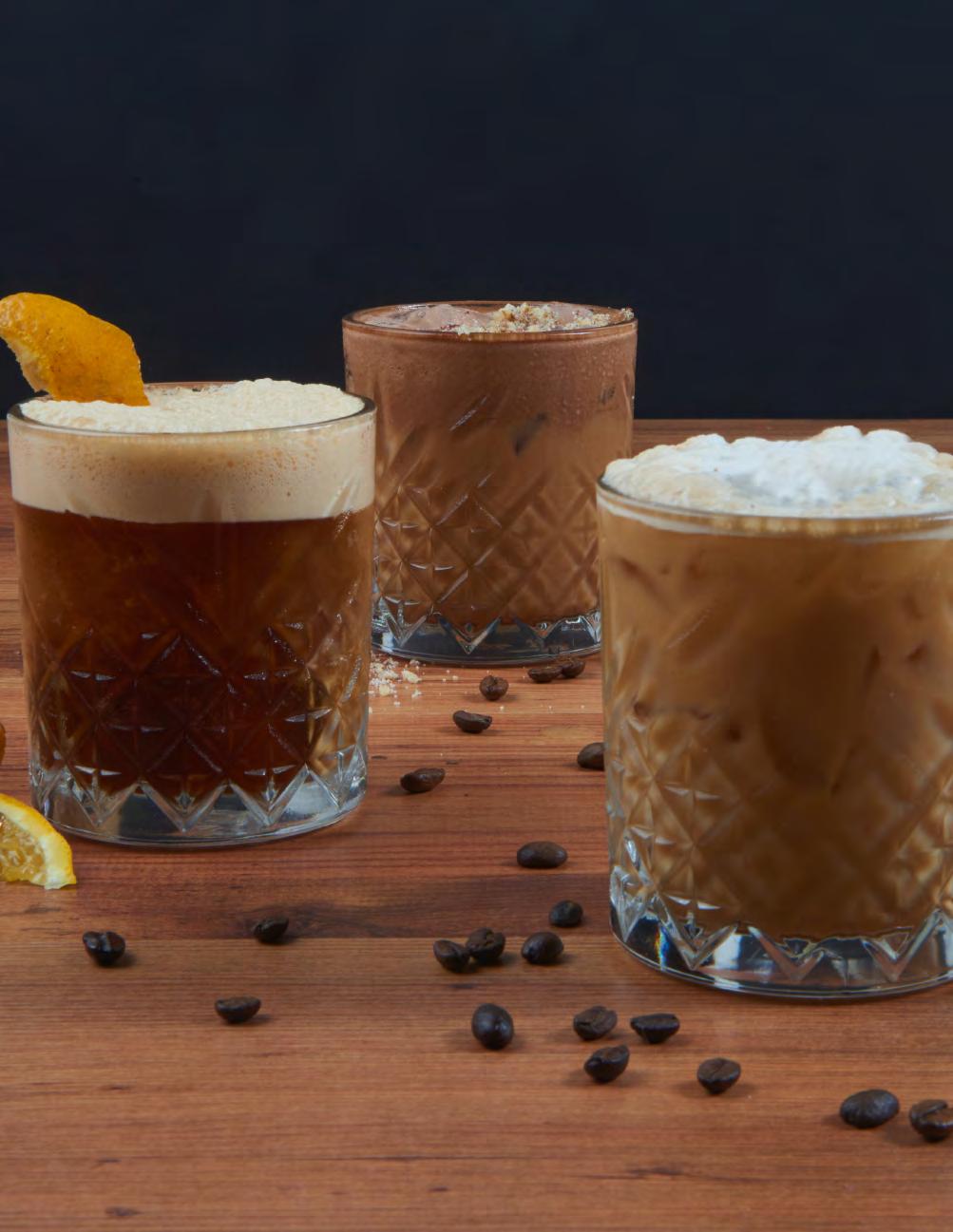 Bizcocho de chocolate con nuez, relleno de crema de moka, cubierto de crema de chocolate.