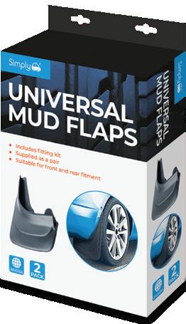 • Universal mud flaps designed to fit most vehicles