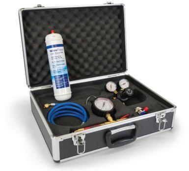 The Nitro Trace Leak Test Kit is for use on vehicle air conditioning systems. The 10 Bar Regulator is designed to meet the specifications of SAE standard J2790.