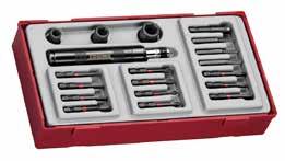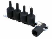 GENERAL WORKSHOP 114 | INSTORE FOR OUR EXPERT ADVICE AT WORK DELIVERY & INSTALLATION BY PHONE 0121 749 8801 **All prices are subject to change without prior notice due to market fluctuation. **All Prices Excl VAT TORX PLUS® BIT SET 23PC PART NO: 5031 • Torx Plus® bits: 1/4" Hex: TP10, TP15, TP20, TP25, TP30; 10mm Hex: TP40, TP45, TP50, TP55, TP60. • Torx Plus® tamperproof: 1/4" Hex: TP10H, TP15H, TP20H, TP25H and TP30H; 10mm Hex: TP40H, TP45H, TP50H, TP55H and TP60H x 10mm Hex in S2 steel. • Handles Torx Plus® fixings which gives greater torque and minimises wear on fixings. • Includes stainless steel magnetic bit holder with a quick chuck shank and 2 x bit adaptors: 1/4"D and 3/8"D. • Bits manufactured from impact quality S2 steel, adaptors from chrome vanadium. • TORX® and TORX PLUS® are registered trademarks of Acument Intellectual Properties, LLC. EXTERNAL DEBURR/CHAMFER TOOL 3 - 19MM PART NO: 7510 • Repair damaged wheel studs, bolts & deburr metal bar. • Size range 3 - 19mm; max speed 0 - 400rpm. • HSS blade 1/4" shank. Chamfer angle: 50 degrees (approx). • Effective on stainless steel, hardened steel, mild steel, copper, brass, wood, fibreglass and hard plastic. • Available as part of a set, please see Laser Part No. 7884 (set of 3 internal and external deburr/chamfer tools) and also in a larger size, Laser Part No. 7856 (13 - 35mm). FLEXIBLE HOSE CLAMP SET ANGLED JAWS PART NO: 7740 • Angled jaws allow access to tight areas. • Three jaw opening sizes: 0 - 13mm, 0 - 16mm & 0 - 24mm. • Single handed use. • High visibility colour for easy location. • Manufactured from light but strong non conductive composite material VACUUM TESTER & BRAKE