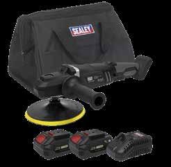 Load Speed: 800 - 2400rpm (max). Max disc diameter: M14 x 180mm (7”). Supplied with 180mm diameter polishing foam and buffing pads
