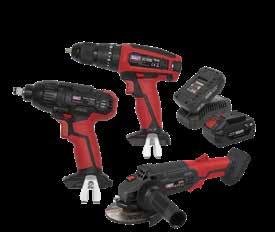 POWER TOOLS 120 | INSTORE FOR OUR EXPERT ADVICE AT WORK DELIVERY & INSTALLATION BY PHONE 0121 749 8801 **All prices are subject to change without prior notice due to market fluctuation. **All Prices Excl VAT 4 X 10.8V SV10.8 SERIES CORDLESS COMBO KIT 2 BATTERIES PART NO: CP108VCOMBO1 PACKAGE INCLUDES: • CP108VDDBO - Cordless Hammer Drill/Driver 10.8V SV10.8 Series Ø10mm • CP108VCRWBO - Cordless Ratchet Wrench 3/8"Sq Drive 10.8V SV10.8 Series • CP108VCPBO - Cordless Polisher Ø75mm 10.8V SV10.8 Series • CP108VCIWBO - Cordless Impact Wrench 3/8"Sq Drive 10.8V SV10.8 Series • CP108VBP - Power Tool Battery 10.8V 2Ah Lithium-ion for SV10.8 Series (x2) • CP108VMC - Battery Charger 10.8V Lithiumion for SV10.8 Series 3 TOOL CORDLESS COMBO KIT 20V SV20 SERIES PART NO: CP20VCOMBO1 PACKAGE INCLUDES: • CP20VDD - Hammer Drill/Driver 20V 13mm - Body Only • CP20VIW - Impact Wrench 20V 1/2"Sq Drive 230Nm - Body Only • CP20VAGB - Cordless Angle Grinder Ø115mm 20V - Body Only • CP20VBP2 - Power Tool Battery 20V 2Ah Lithium-ion for SV20 Series (x1) • CP20VBP4 - Power Tool Battery 20V 4Ah Lithium-ion for SV20 Series (x1) • CP20VMC - Battery Charger 20V Lithium-ion for SV20 Series • CP1200CB - Canvas Bag for CP1200 Series CORDLESS ANGLE GRINDER 20V KIT PART NO: 68010 • Angle grinder includes M14 spindle with spindle lock function for ease of disc changeover (uses 115mm grinding/cutting discs). No load speed: 8000rpm. Easy to adjust disc guard with hand operated lever for multiple angle applications • Two 20V 4.0Ah batteries • 230V 4 amp mains battery charger • Heavy duty tool bag • CE, UKCA & RoHS compliant CORDLESS VARIABLE SPEED IMPACT DRILL 20V KIT PART NO: 68011 • Impact drill includes variable speed control with switchable 2 speed setting, forward & reverse button and 23 torque settings for hammer action, drilling and screwdriving (max: 130Nm). No Load Speed: 500 / 1750rpm; impact rate: 9600 / 32000 BPM. High torque handle also included • Two 20V 4.0Ah batteries • 230V 4 amp mains battery charger • Heavy duty tool bag • CE, UKCA & RoHS CORDLESS POLISHER 20V KIT PART NO: 68073 • Cordless polisher includes M14 spindle, for use with standard 150mm compound & polishing heads. 5-stage speed selection, with safety switch and detachable 'D' handle. No