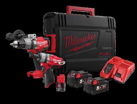 POWER TOOLS | 121 M18™ FUEL™ ONE KEY TWIN PACK M18 ONEPP2O-523X PART NO. GEQ4933464774 • M18ONEPD • M12CD • 2 x M18 5.0Ah batteries • 1 x M12 2.0Ah battery • 1 x M12-18FC • HD Box M18™ BRUSHLESS COMBO KIT M18 BLPP2A2-502X PART NO. GEQ4933464523 • M18BLPD2 • M18BLID2 • 2 x M18 5.0Ah Batteries • 1 x M12-18FC • 1 x HD Box M18™ TWIN PACK M18 FPP2A2-304P PART NO. GEQ4933478791 • M18FPD2 • M18FID2 • 4 x 3.0AH HO Battery • Fast Charger • PACKOUT Case M18 VALUE KITS OFFER PRICE £399 OFFER PRICE £449 OFFER PRICE £299