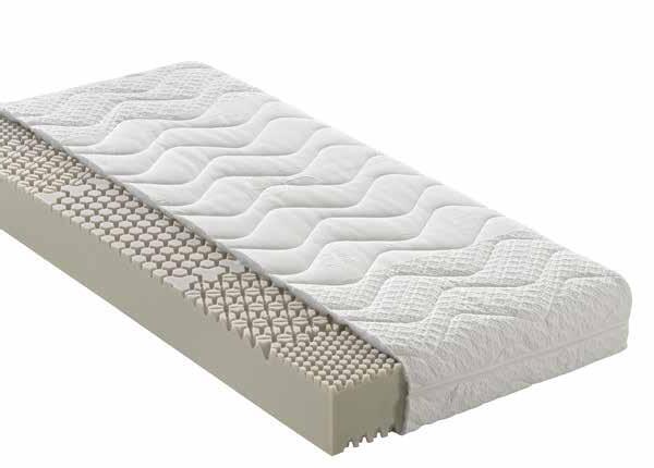 3D-Würfelschnitt für eine perfekte Körperanpassung. Beckenzone mit integriertem Klimaschaum für eine ergonomisch ideale Lagerung der Wirbelsäule. Der TencelTM-Bezug mit 37° DMM-Technologie (60 % Polyester, 40 % Lyocell (TencelTM)) reguliert selbstständig den Feuchtigkeitstransport.