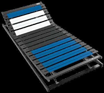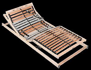 7-Zonen-Motorrahmen mit 42 gefederten Schichtholz-Leisten in holmübergreifenden, Trio-KautschukKappen. Individuell in der Festigkeit regulierbarer Lenden- und Beckenbereich. Mit Kabelhandschalter. Elektrosmogfrei, da zur Bedienung nur 24 Volt Schwachstrom notwendig sind. 140/200 cm UVP 949,- jetzt 699,-