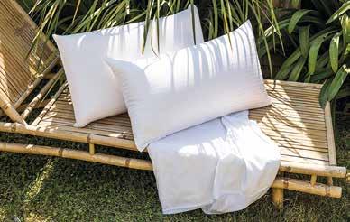 Bezugsstoff: 100 % Baumwolle kbA. Füllung: Aerelle Blue Faser – Cyclafill® Hohlfaserkugeln im herausnehmbaren Innenbeutel, mit Reißverschluss.