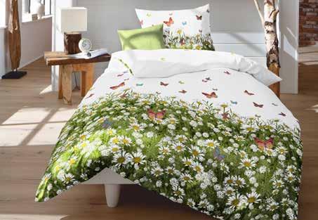 Frühlingshafte Mako-Satin Bettwäsche mit einer traumhaften Blumenwiese. 100% Baumwolle.
