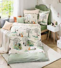 Kinder-Baumwoll-Bettwäsche mit niedlichem Picknick-Motiv.