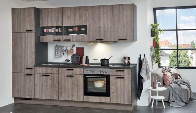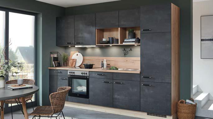 KÜCHENZEILE NOBILIA SPEED ca. 300 cm, Front: Schwarzbeton Nachbildung, Arbeitsplatte: Eiche Sierra Nachbildung