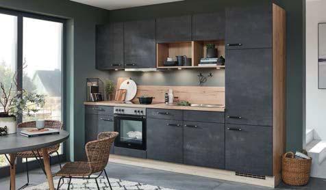 KÜCHENZEILE NOBILIA SPEED ca. 300 cm, Front: Schwarzbeton Nachbildung, Arbeitsplatte: Eiche Sierra Nachbildung