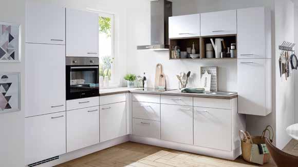 WINKELKÜCHE NOBILIA TOUCH ca. 245 x 285 cm, Front: Lacklaminat, Alpinweiß supermatt, Arbeitsplatte: Eiche Havanna Nachbildung