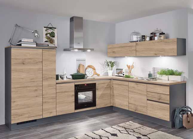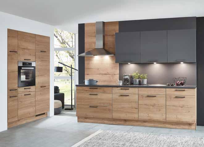 STRUCTURA / TOUCH Front: Eiche Sierra Nachbildung / Lacklaminat, Schiefergrau supermatt, Arbeitsplatte: Schiefergrau