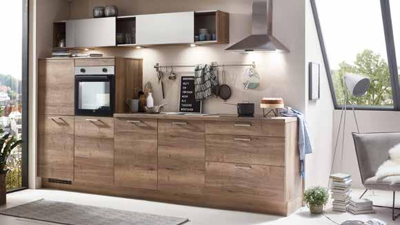 KÜCHENZEILE NOBILIA STRUCTURA / INOX ca. 330 cm, Front: Eiche Havanna Nachbildung / Lacklaminat, Stahl gebürstet Nachbildung, Arbeitsplatte: Eiche Havanna Nachbildung