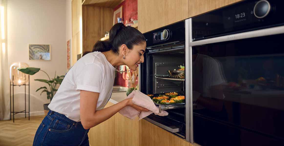 Der Türgriff schwenkt beim Öffnen und Schließen der Backofentür automatisch und ergonomisch mit.