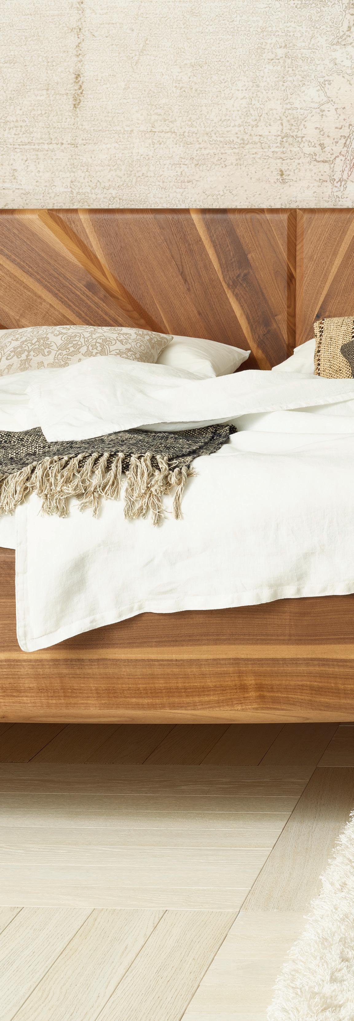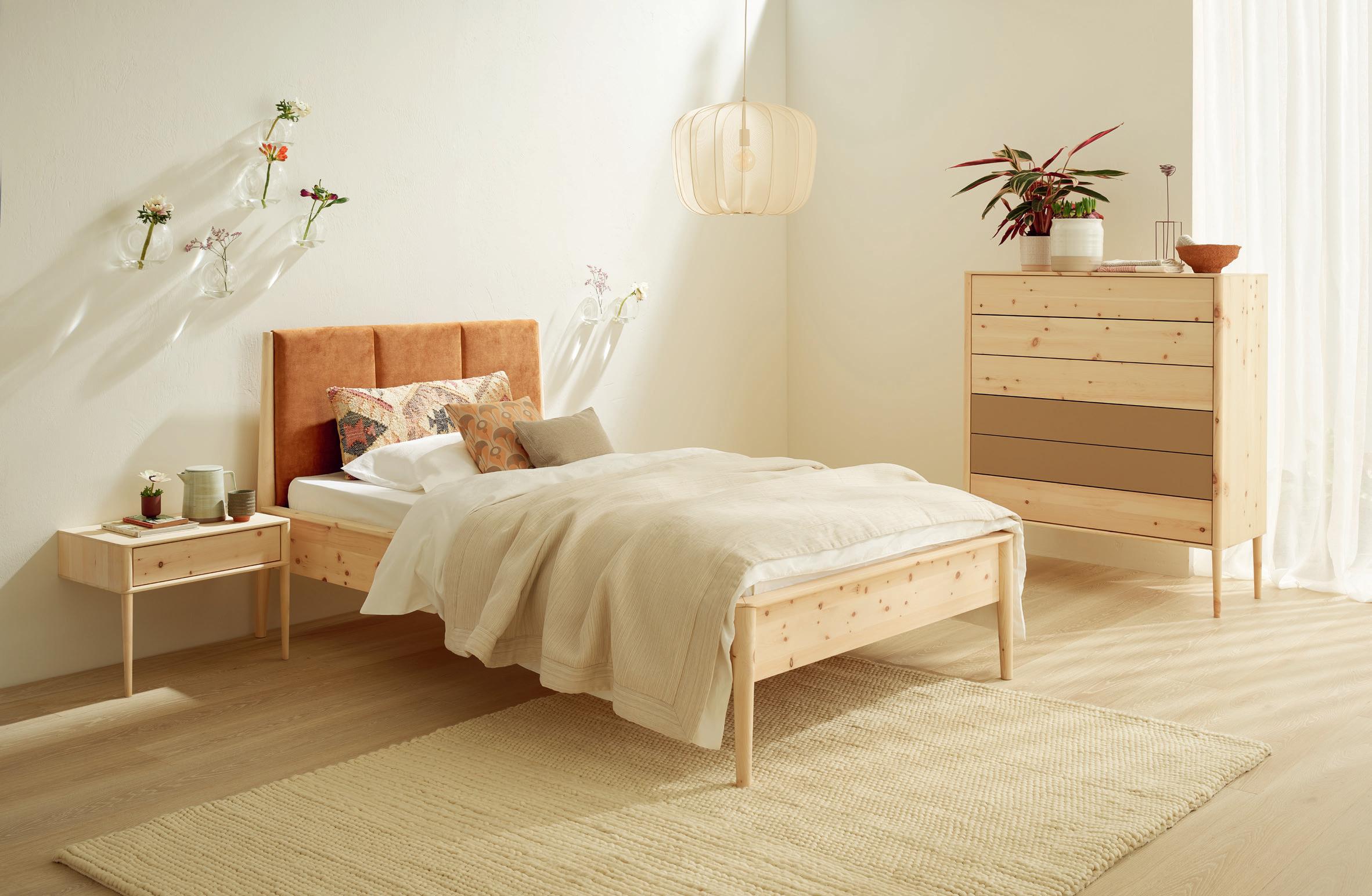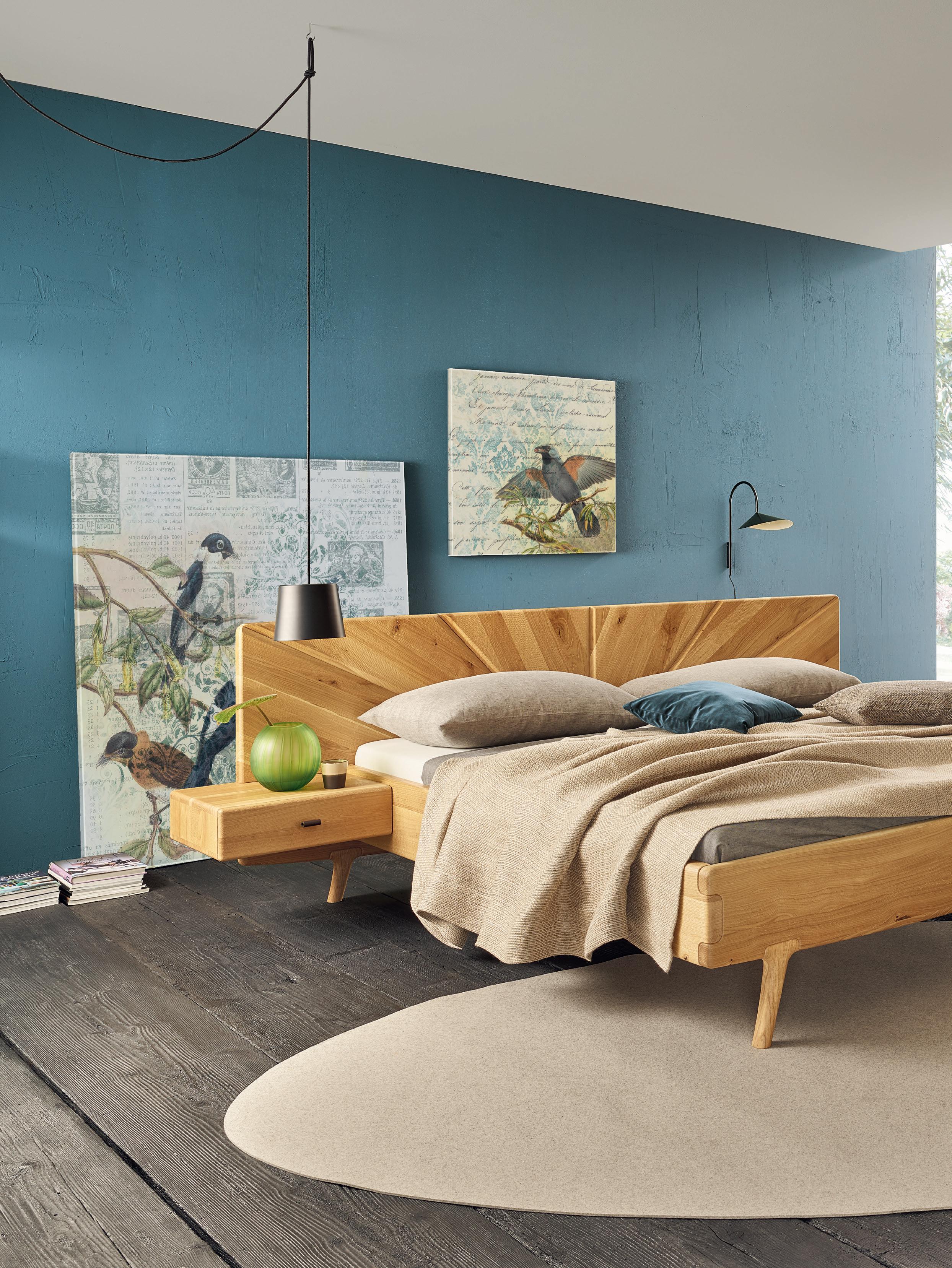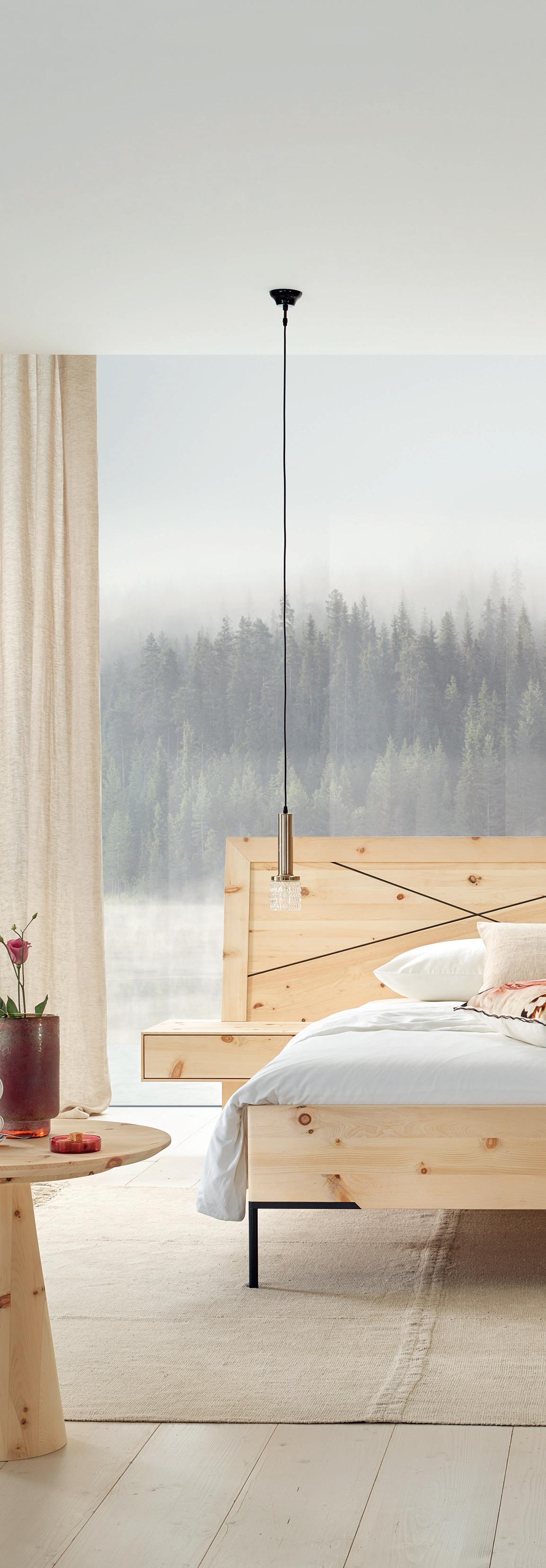 Zurückhaltung ist ihre Stärke nicht. Imposant steht dieses Bett im Raum, die Prismen im Haupt verstärken diesen Eindruck noch. Gleichzeitig vergrößern sie die Oberfläche – in der Zirbenholzvariante ein maximales Dufterlebnis!