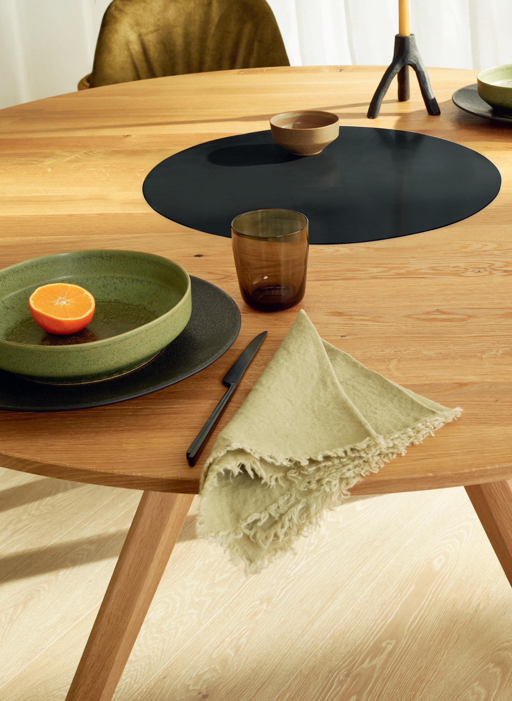 listo Speisezimmer, Asteiche gebürstet, natur geölt, Rundtisch soft mit Drehteller