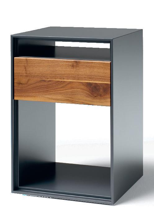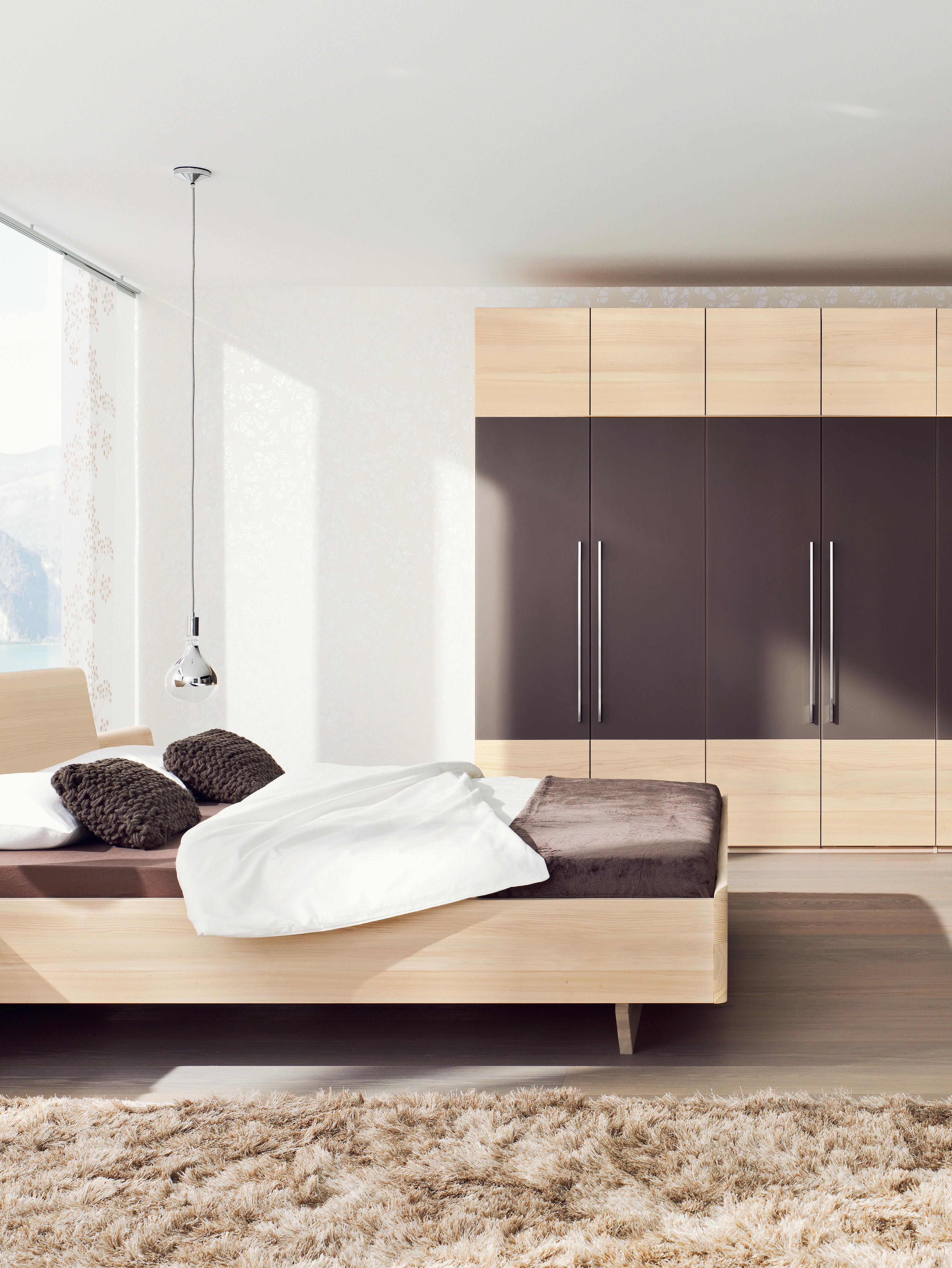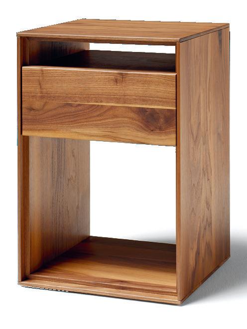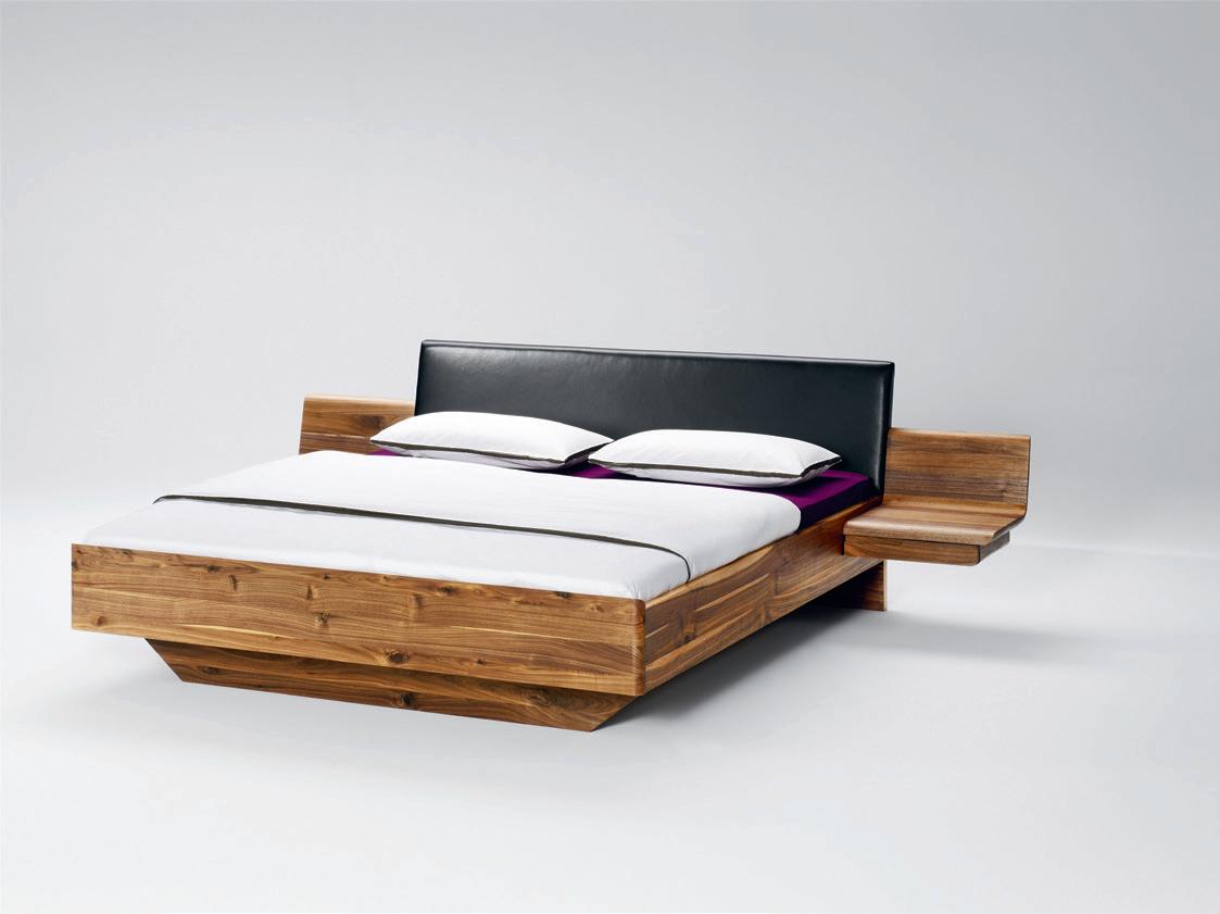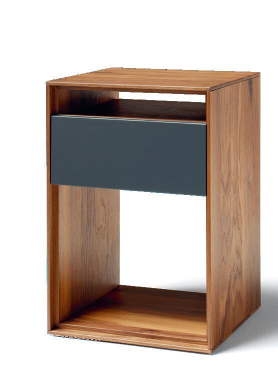 Die integrierten Nachtkästchen können mit farbigen Glasfronten versehen werden – ein reizvoller Kontrast zum Holz.
