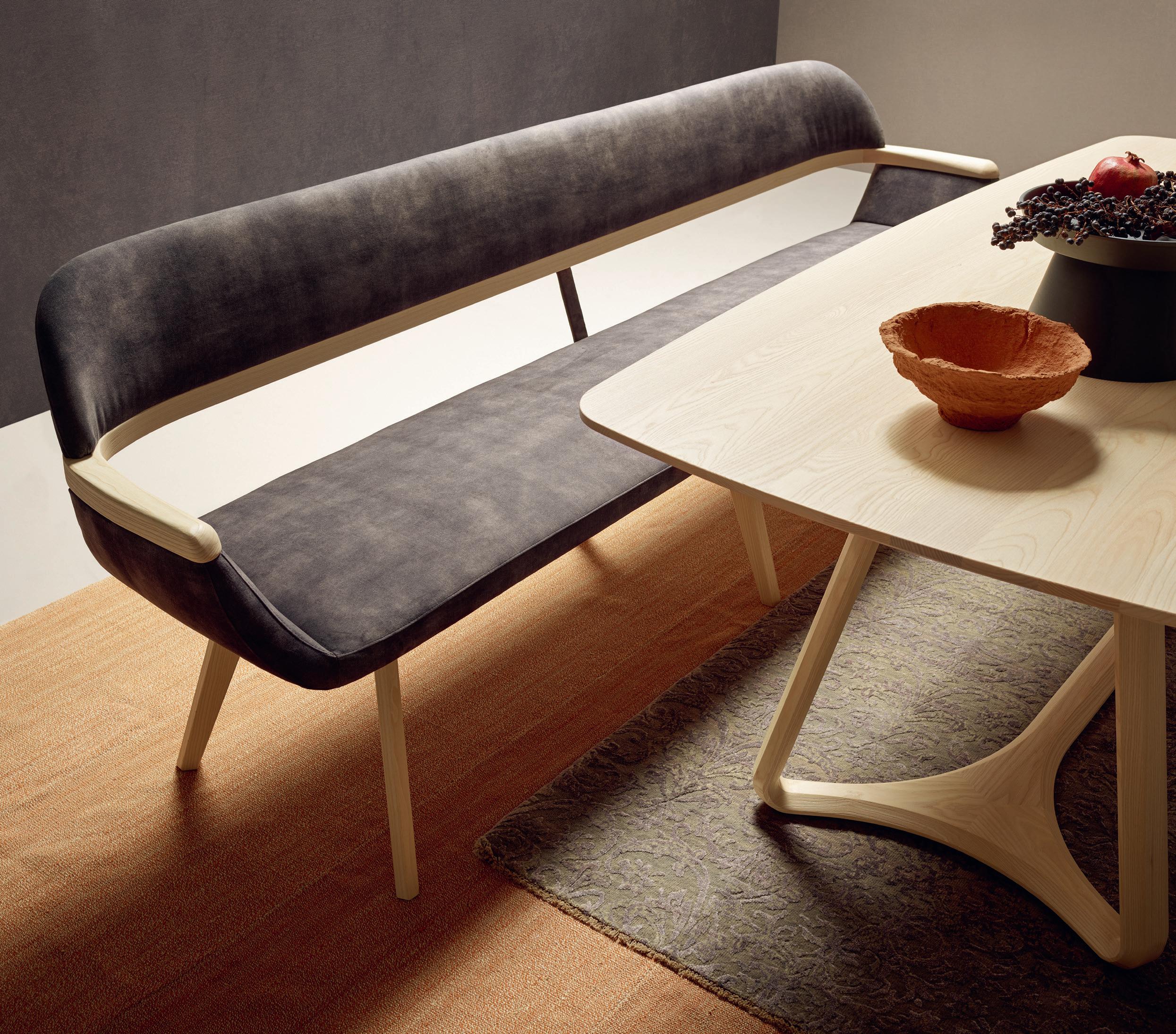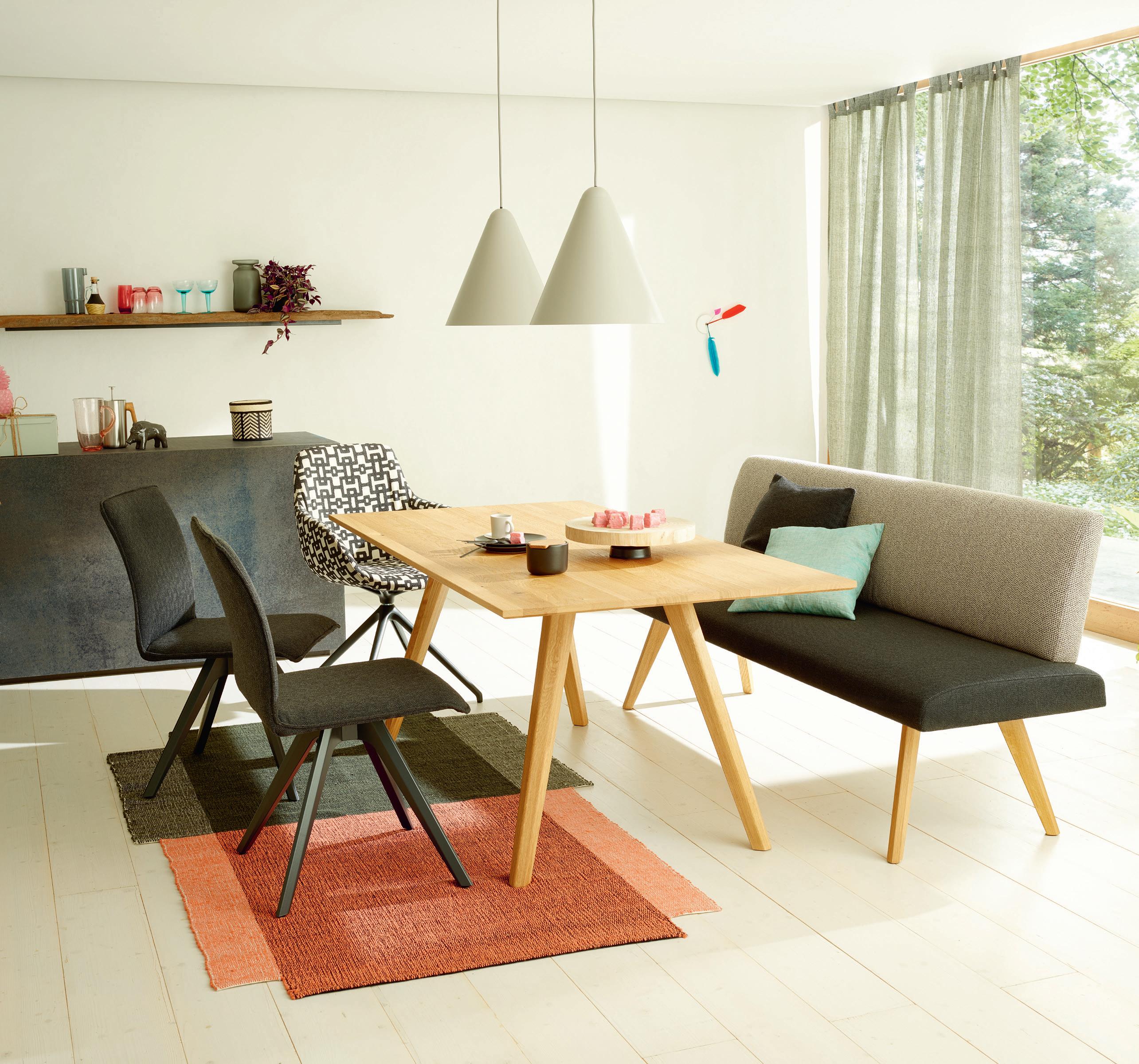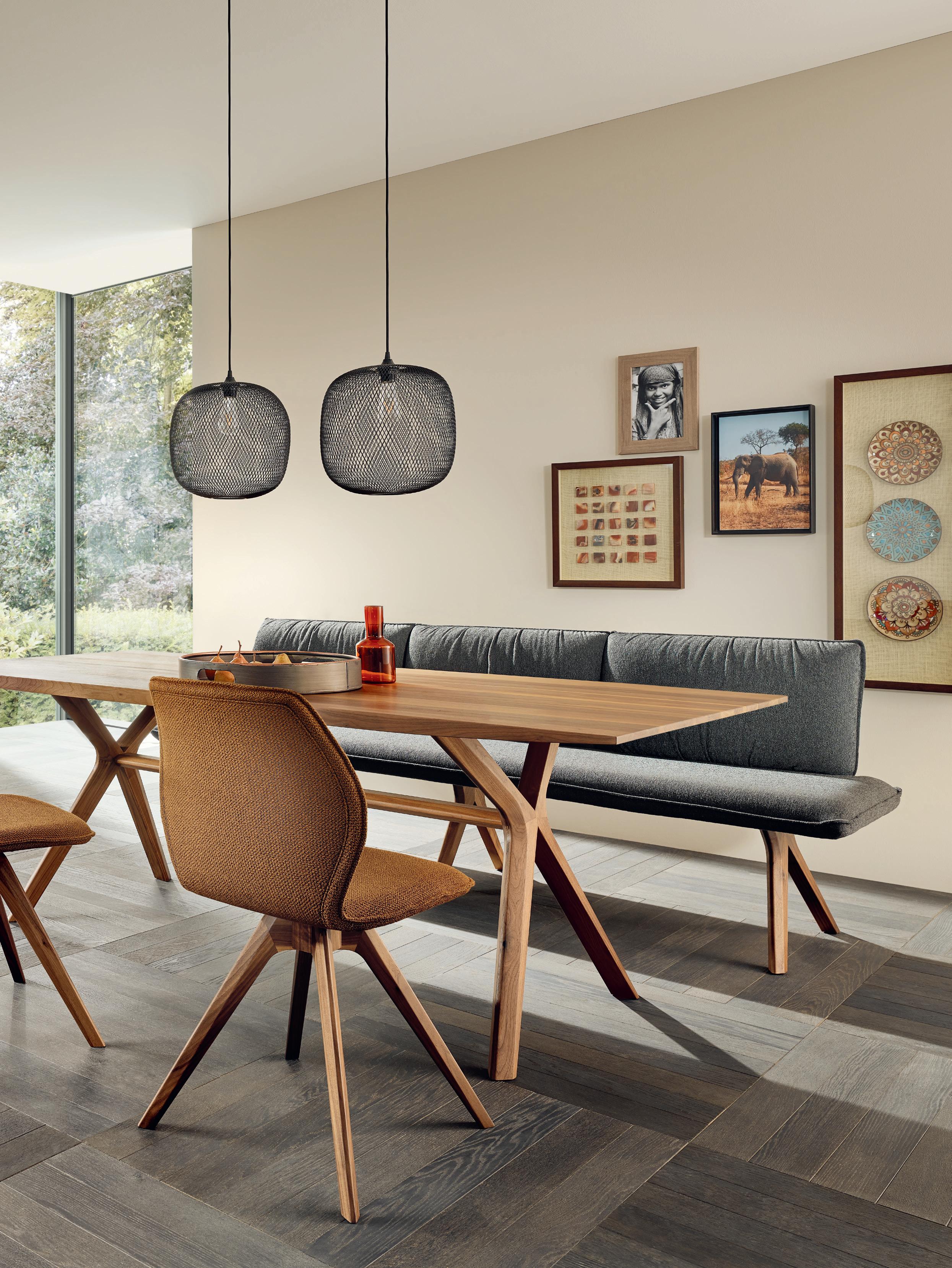 Listo ist in dieser Hinsicht immer eine Bank – eine massive elegante Holzbank in 15 Varianten, vielfältig kombinierbar mit Stühlen und Untergestellen.