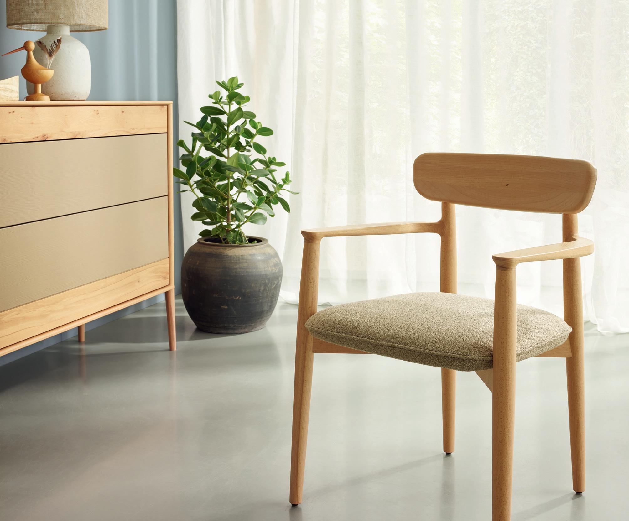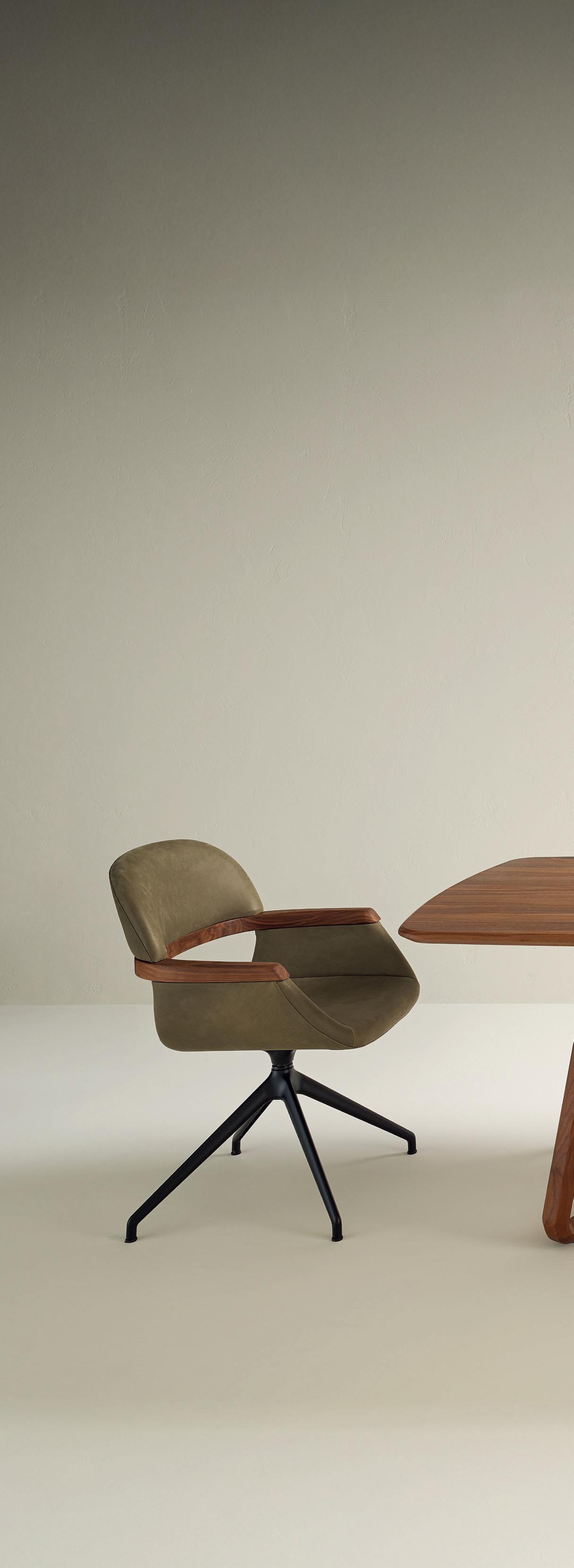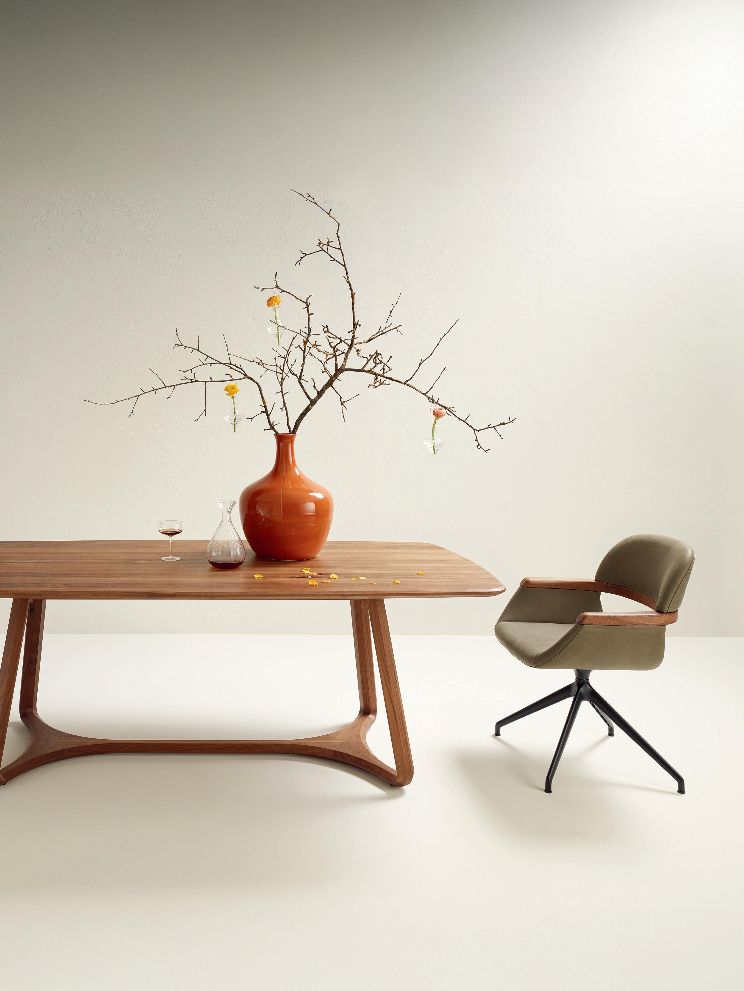 Skandinavische Leichtigkeit trifft italienische Eleganz: Traditionelle Drechselverfahren, kombiniert mit modernster Fertigungstechnik, machen den in Massivholz gefertigten Stuhl einzigartig. Die weich ausgeformten Massivholz-Armlehnen sind wahre Handschmeichler und laden zum Verweilen ein. Vielfältige Gestaltungsmöglichkeiten und Optionen für den Rücken bieten Ihnen die Freiheit, den Stuhl nach persönlichen Wünschen zu gestalten.