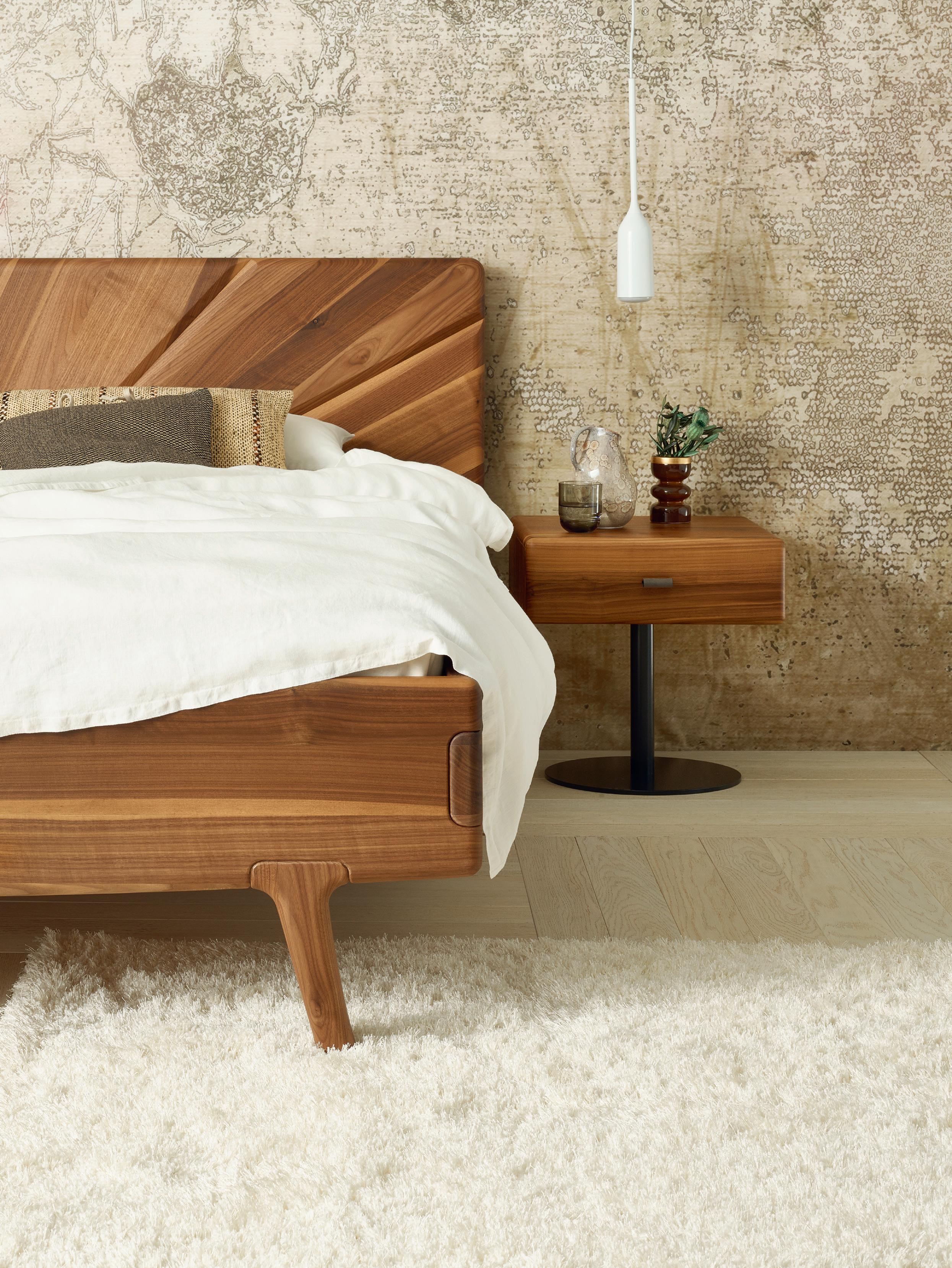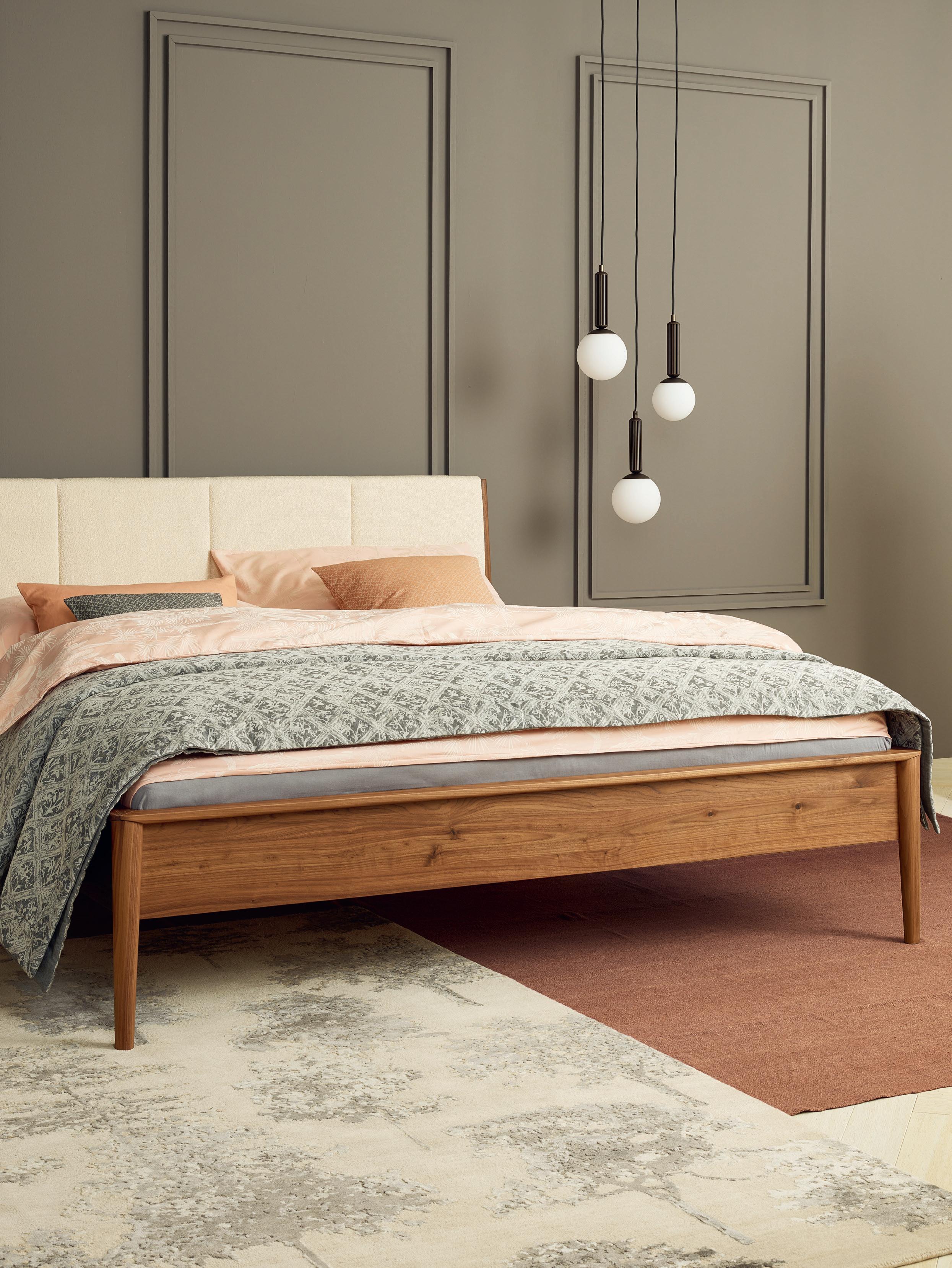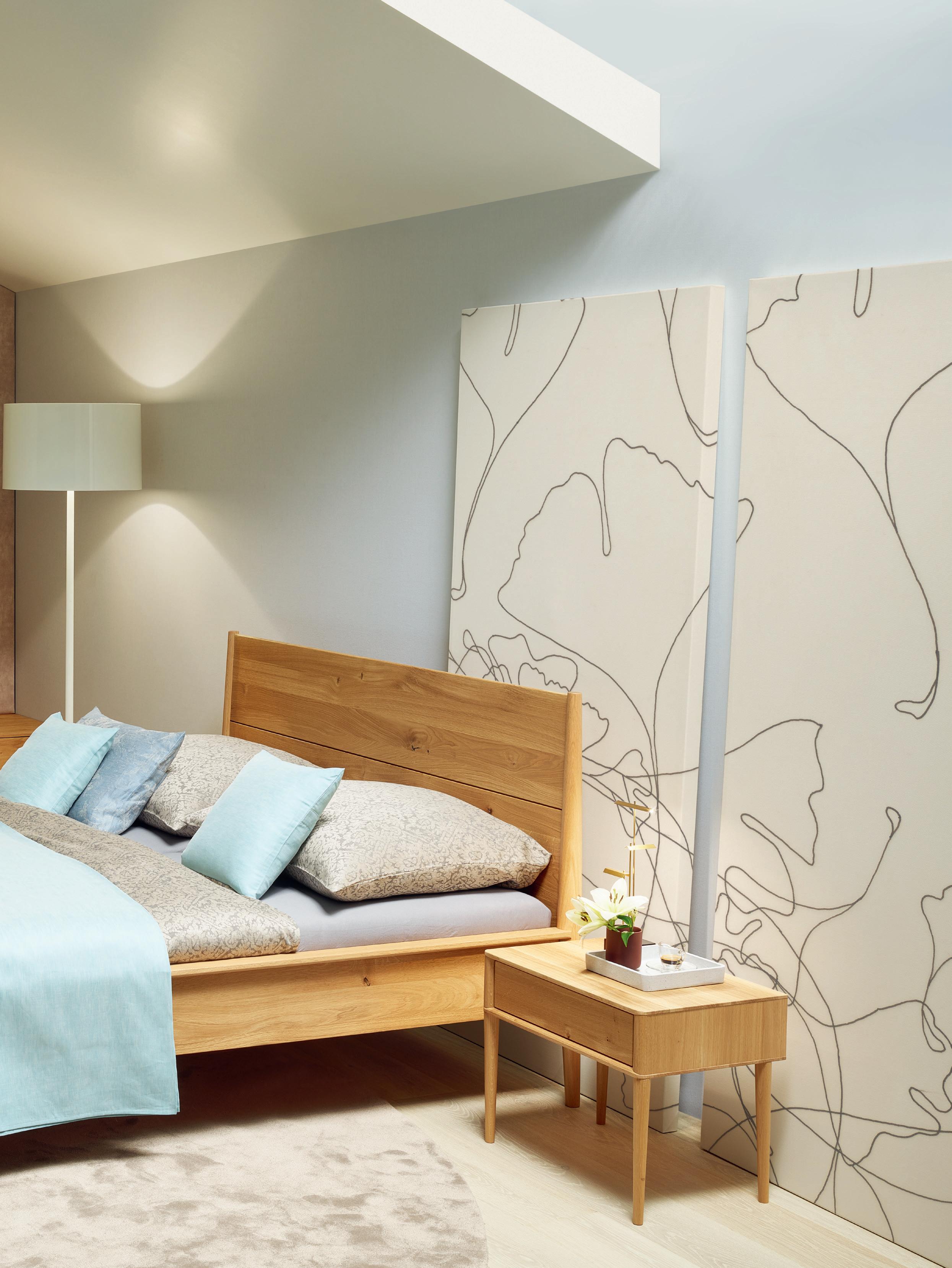 Nachtkonsolen können optional angebracht werden und setzen das dezent geschwungene Design des Kopfteils nahtlos fort.