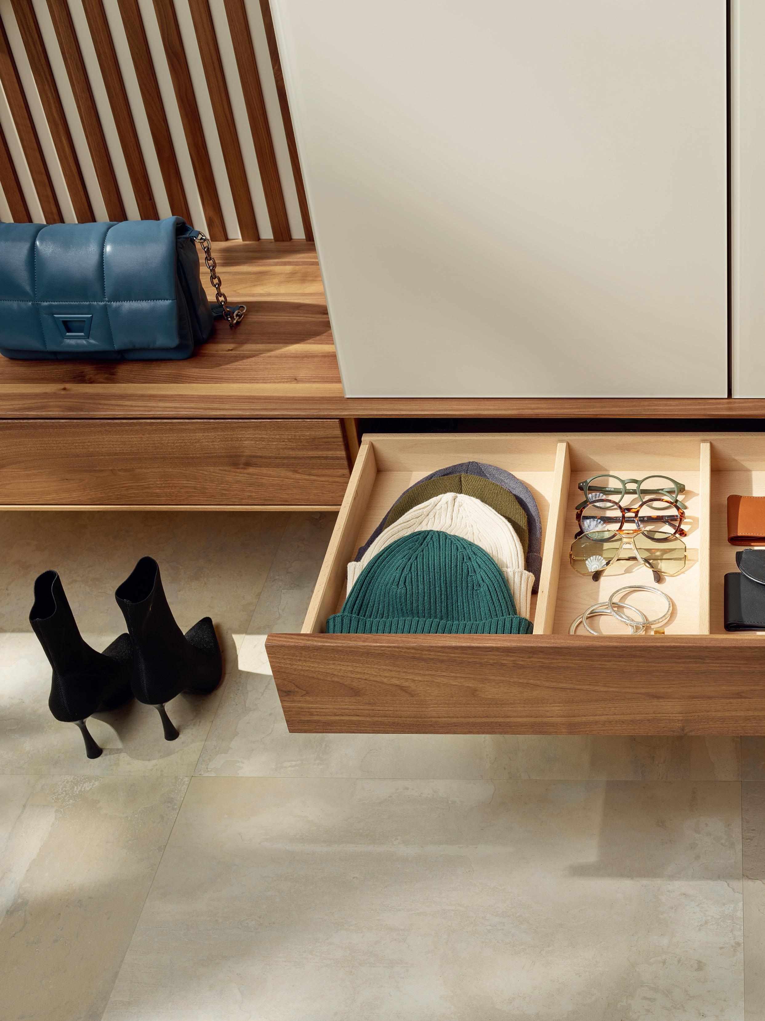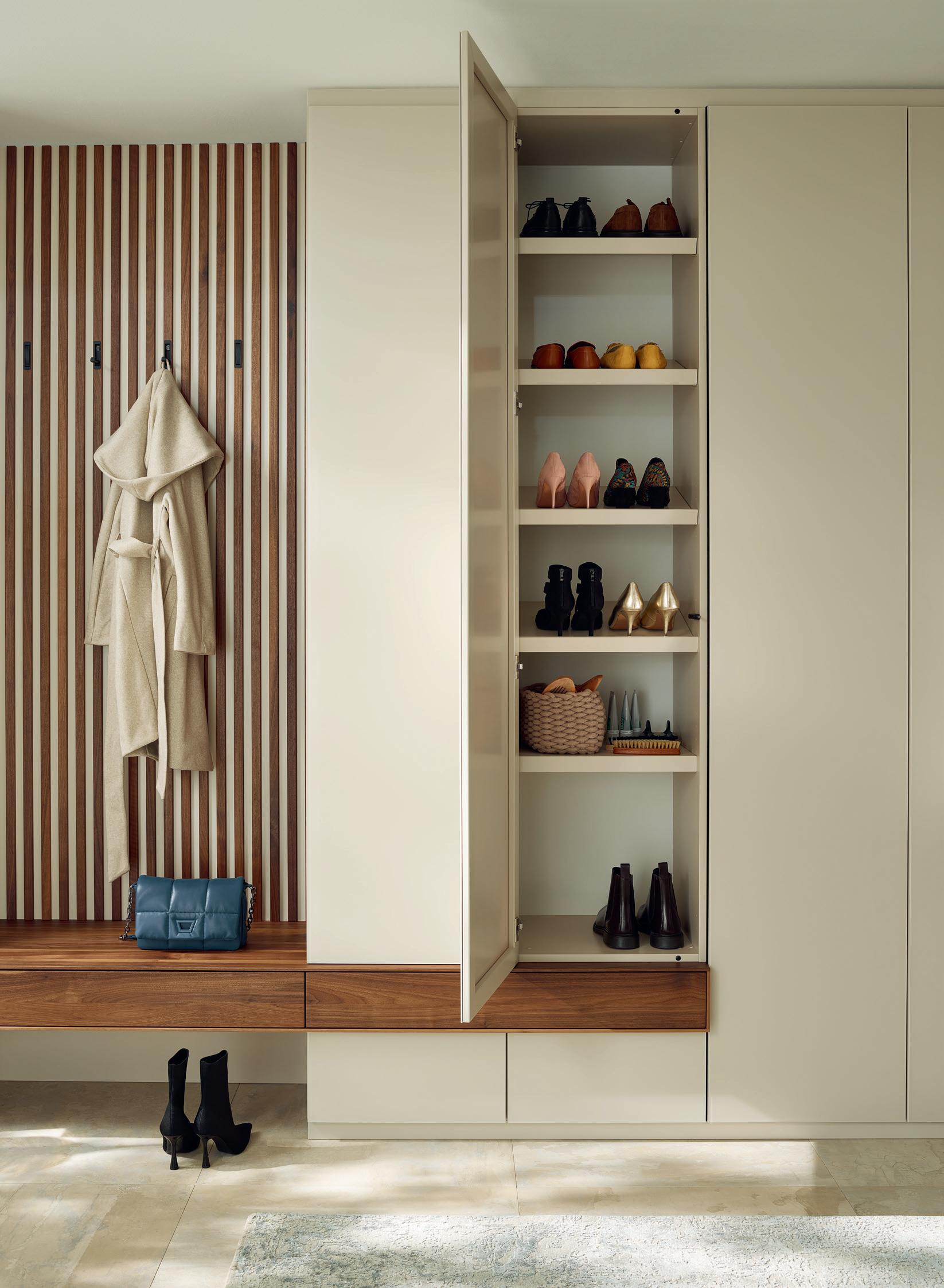 Ein wandelbares Ordnungskonzept mit intelligenten Lösungen und cleveren Details: Die Garderobe Puro schlägt in die gleiche Kerbe wie Lina, aber ihr Stil ist puristischer.