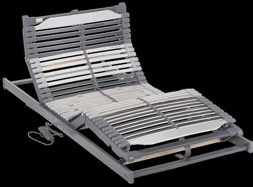 Mit Flachmotor und 2 Motoren, Kopf- und Fußteil getrennt stufenlos verstellbar, überlagernde Latten, Härtegrad verstellbar, mehrere Zonen.