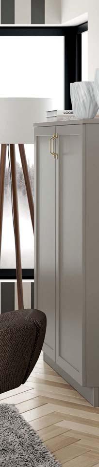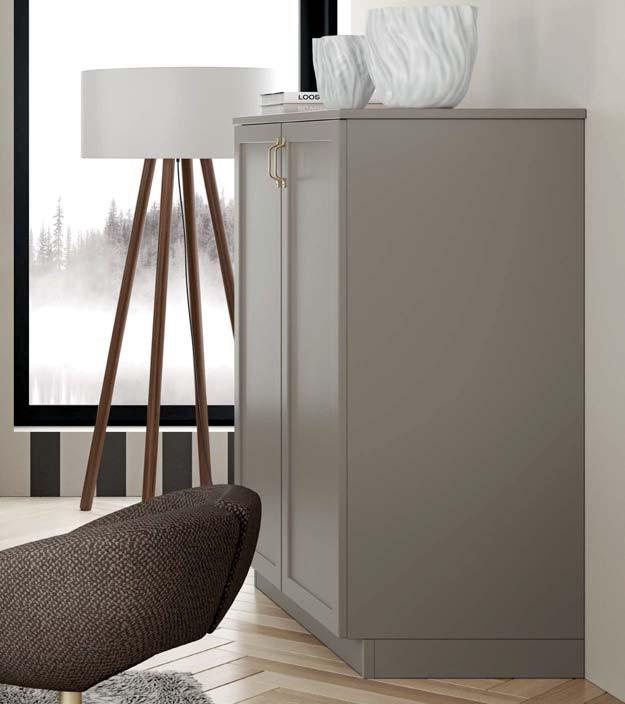 Im Bild zu sehen: Front: 234 Greige, Griff: 790 Bügelgriff Messing gebürstet