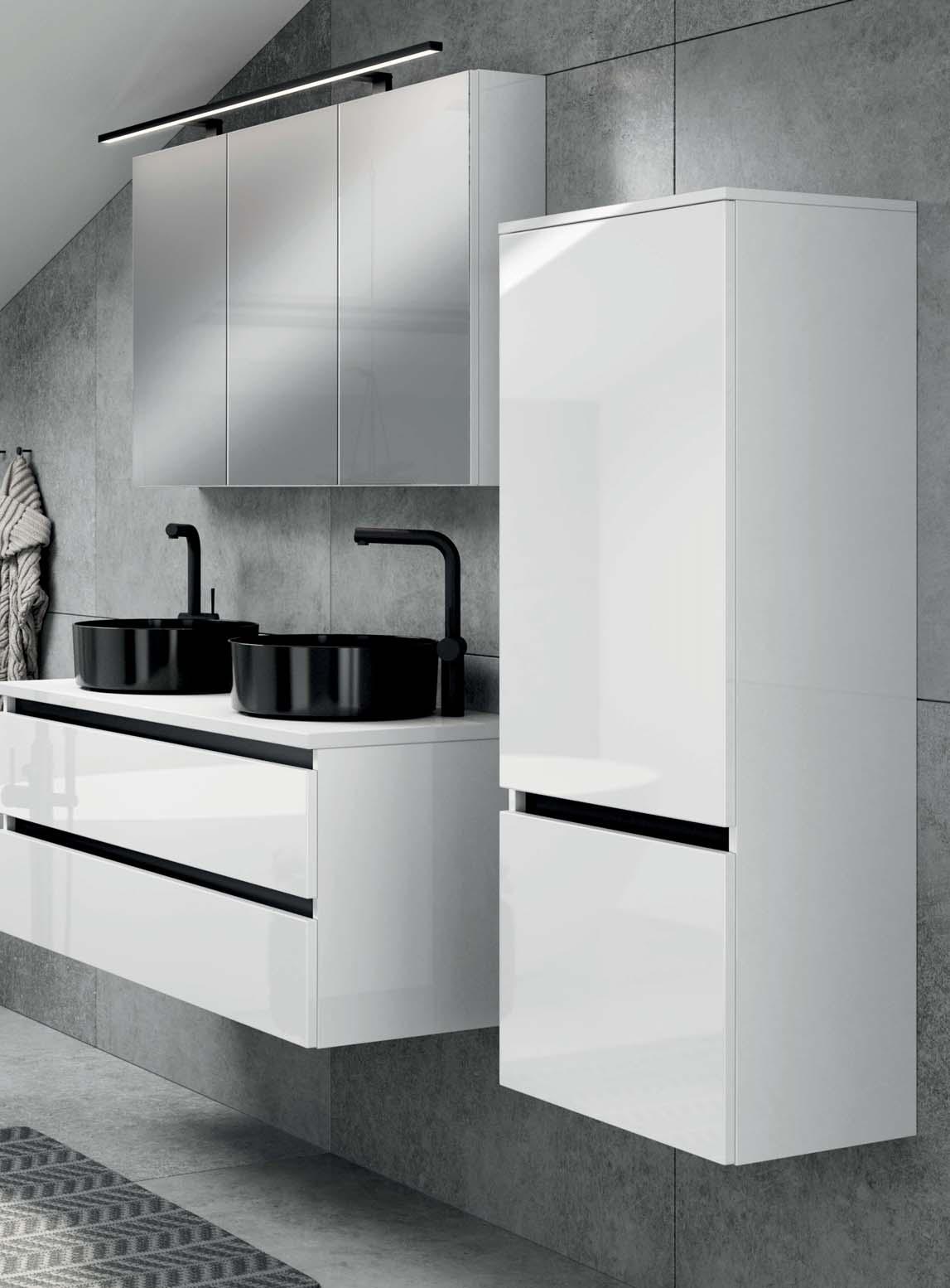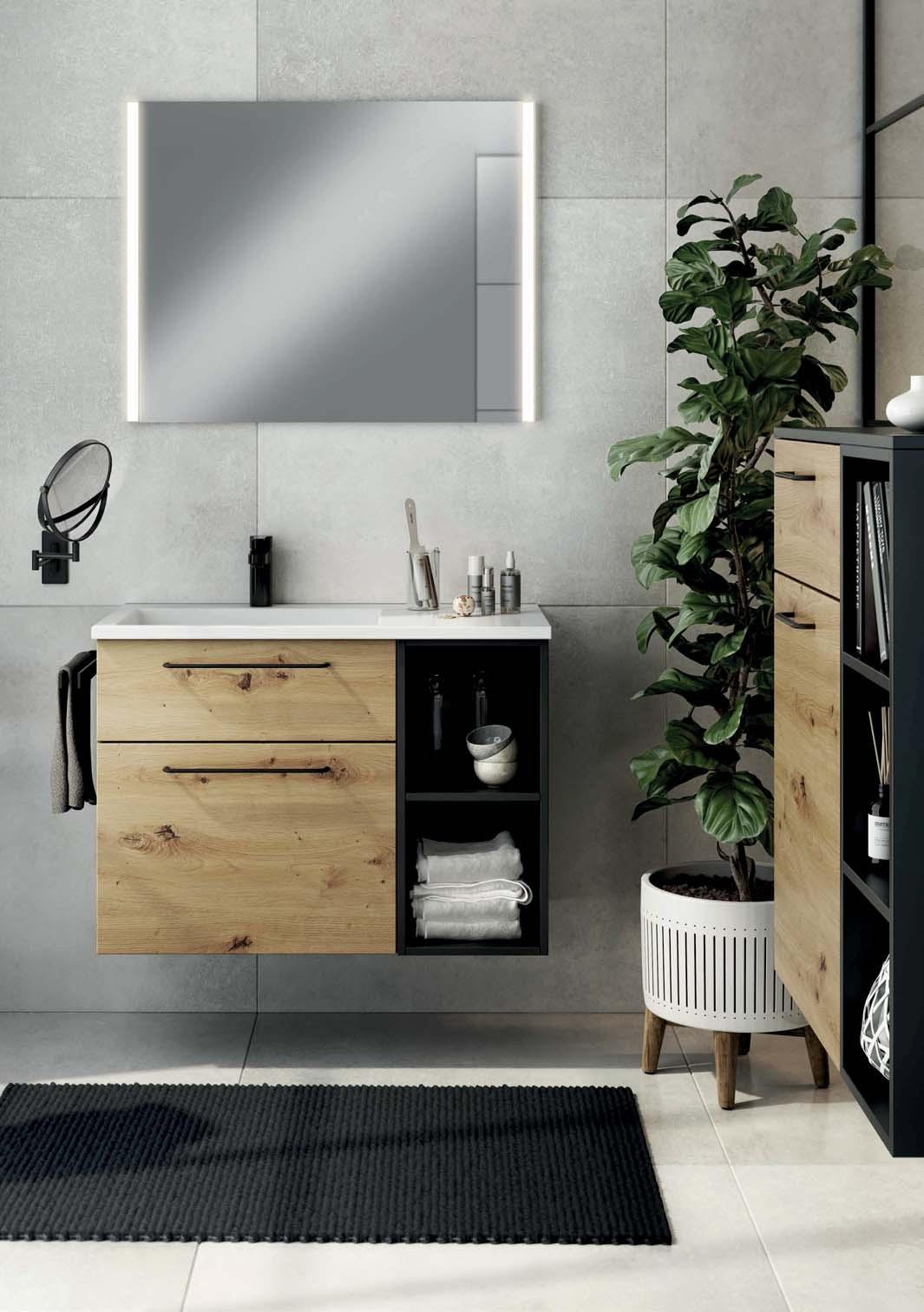 Keramikwaschtisch BARI Waschtischunterschrank Waschtischplatte Maxiboard Spiegelschrank LED-Aufsatzleuchte ELBA