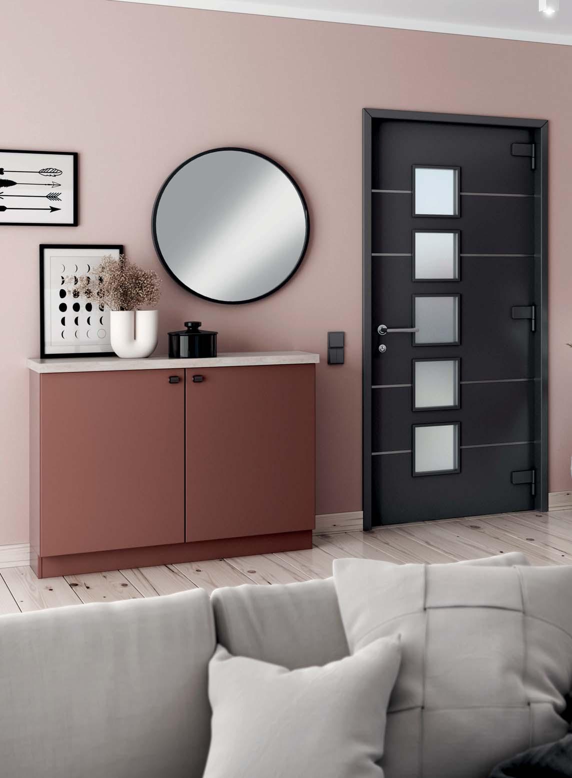 Front: Baku 233 Stormgrey seidenmatt, Griff: 125 Knopf anthrazit antik