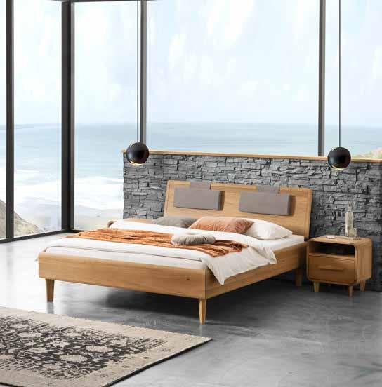 Für dieses Massivholz-Bettprogramm steht eine große Auswahl an Polsterkopfteilen zur Verfügung.