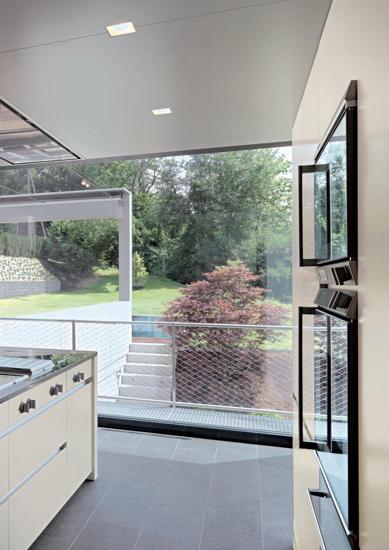 Классика современной кухонной архитектуры: AVANCE от LEICHT без ручек с характерным скошенным передним кантом. Верхняя ручкавпадина находится здесь под первой линией выдвижных ящиков.