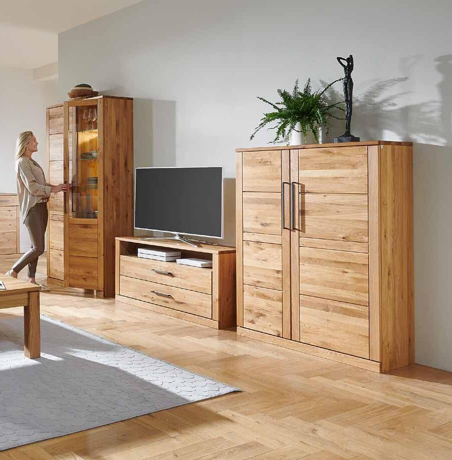 18 Wohnwand Gotenburg in massiver Wildeiche bianco geölt, bestehend aus: Multivitrine